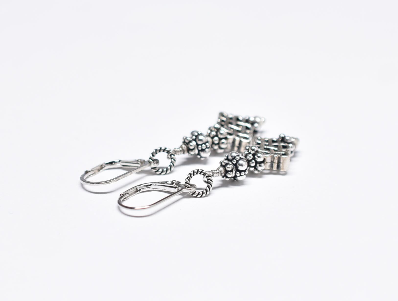 花形のパーツ、壺のようなパーツもシルバー925です。壺のような形のシルバービーズは一つ一つハンドメイドで作られたものです。