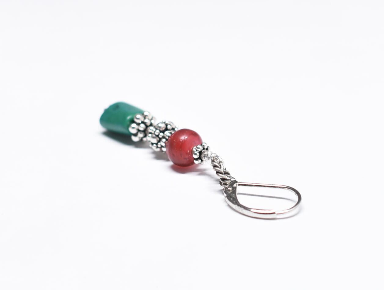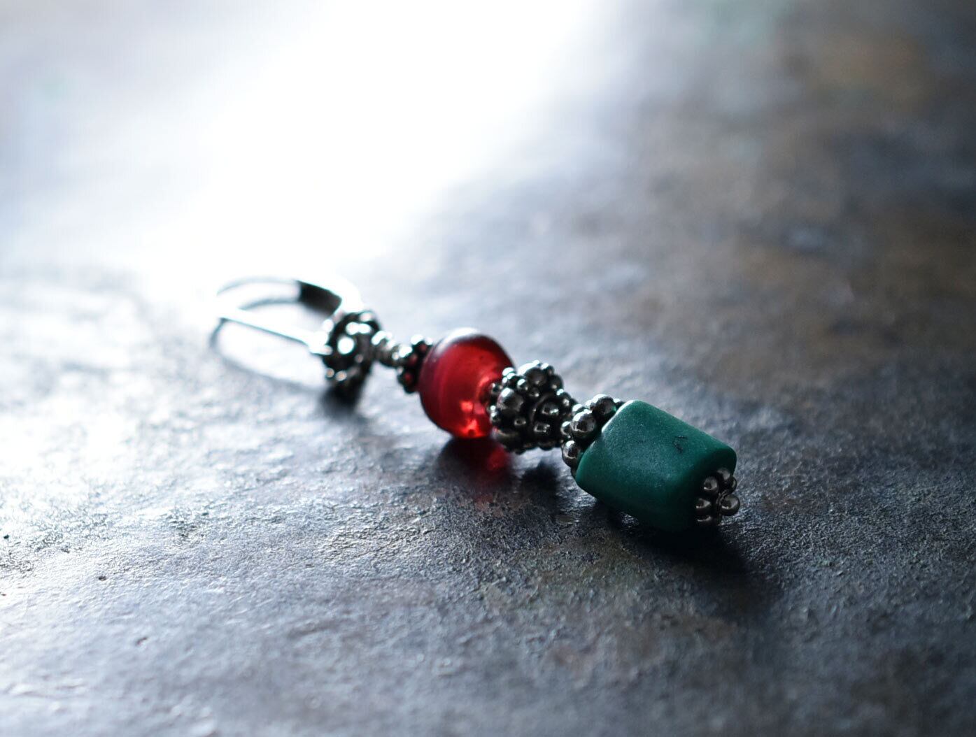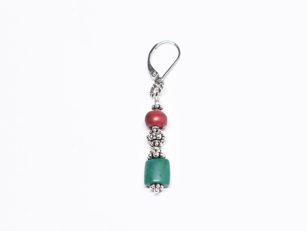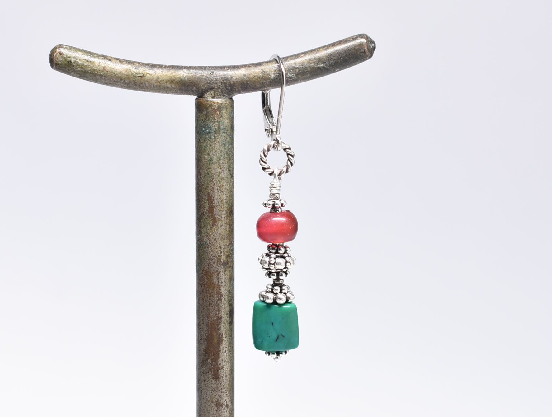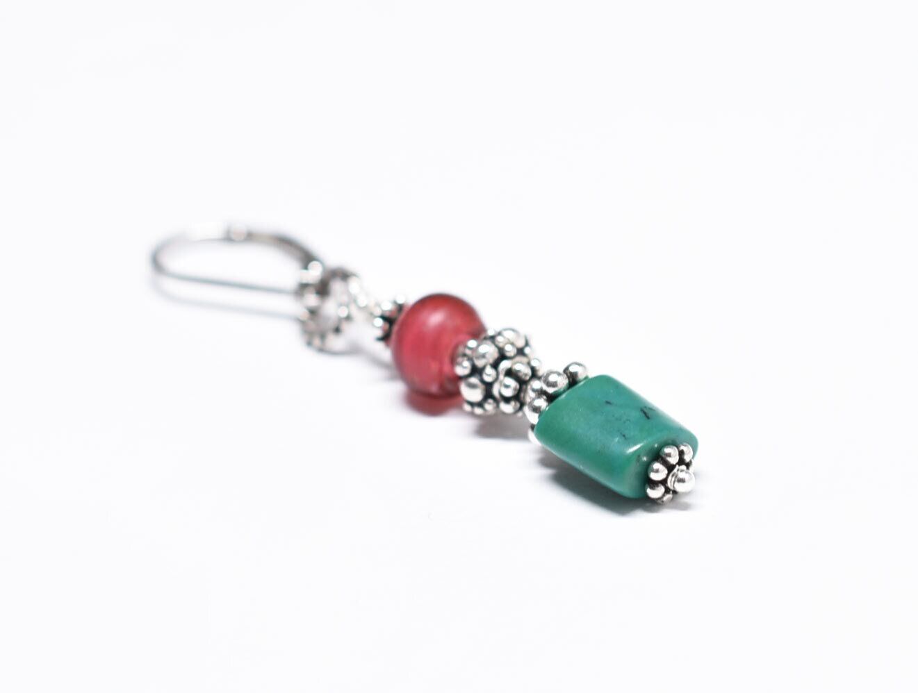 oldチベタンターコイズと金赤ホワイトハーツ、シルバービーズの片耳ピアス