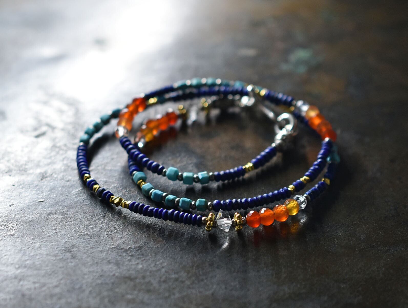 素材:カーネリアン、ターコイズ、クォーツ、ラピスラズリ、カレンシルバー、シルバー、ワイヤー