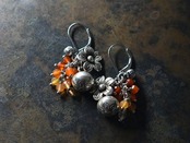 鈴とお花カレンシルバー、たわわなカーネリアン、クォーツ、インドシルバー鈴を繋いだピアスです。