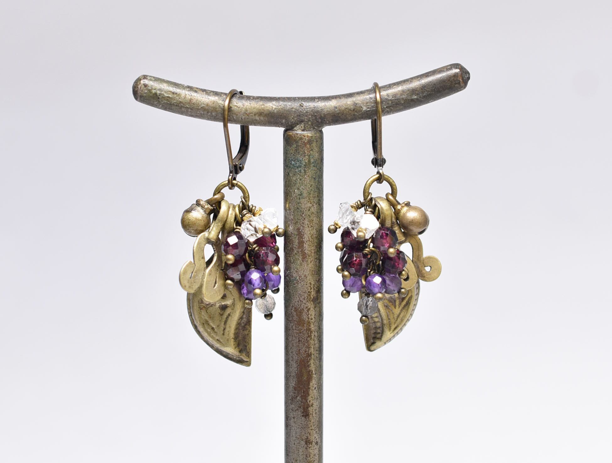 カットが施されたガーネットとアメジストをたわわに実らせました。一粒ラブラドライトを入れました。
