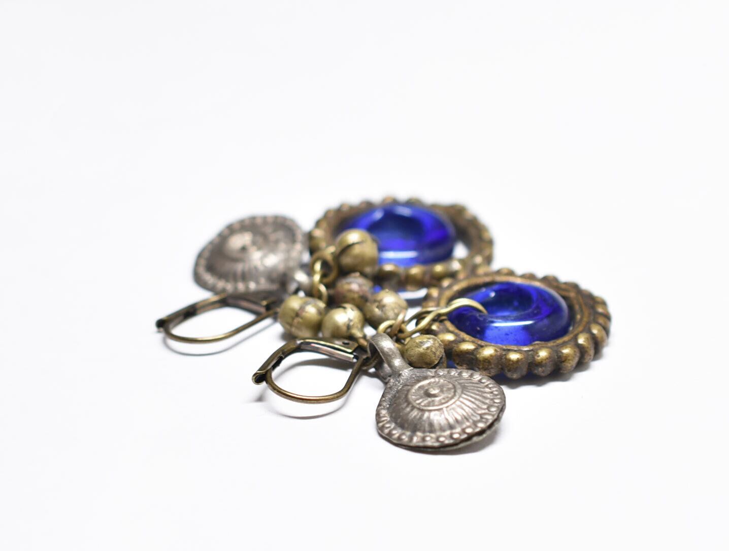oldインドリングとブルードゴンドーナツ、太陽の様なアフガンメタル、民族鈴を繋いだピアスです。