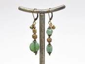 グリーンローマングラスとoldオリッサブラス&つぶつぶブラス、民族鈴のピアス
