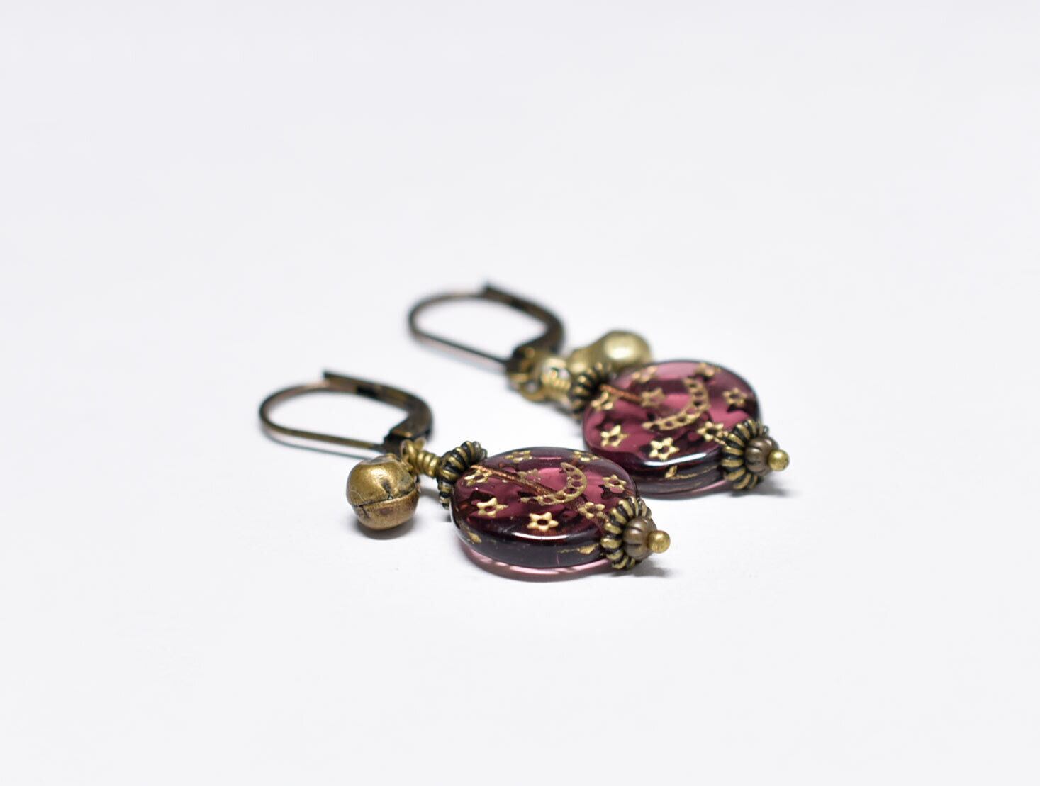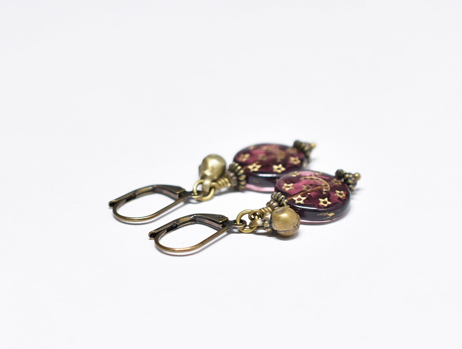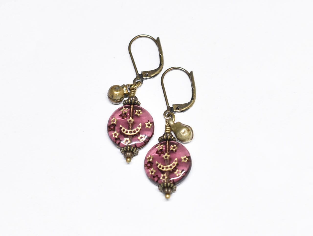 月と星の模様が施された聖者のビーズと、小さな鈴を繋いだピアスです。