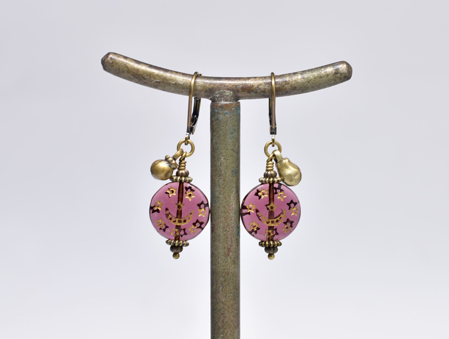 聖者のビーズと小さな民族鈴のピアス(パープル)