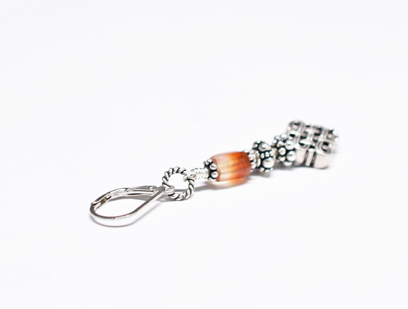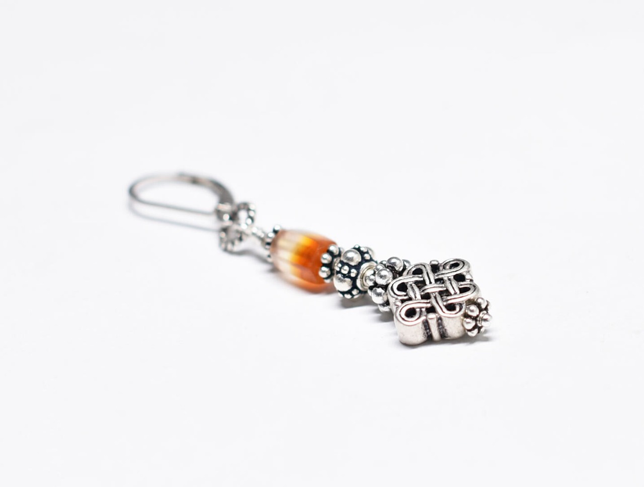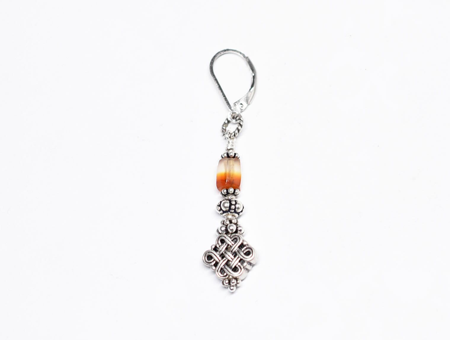 エンドレスノットと古代カーネリアン、シルバービーズを繋いだ片耳ピアスです。