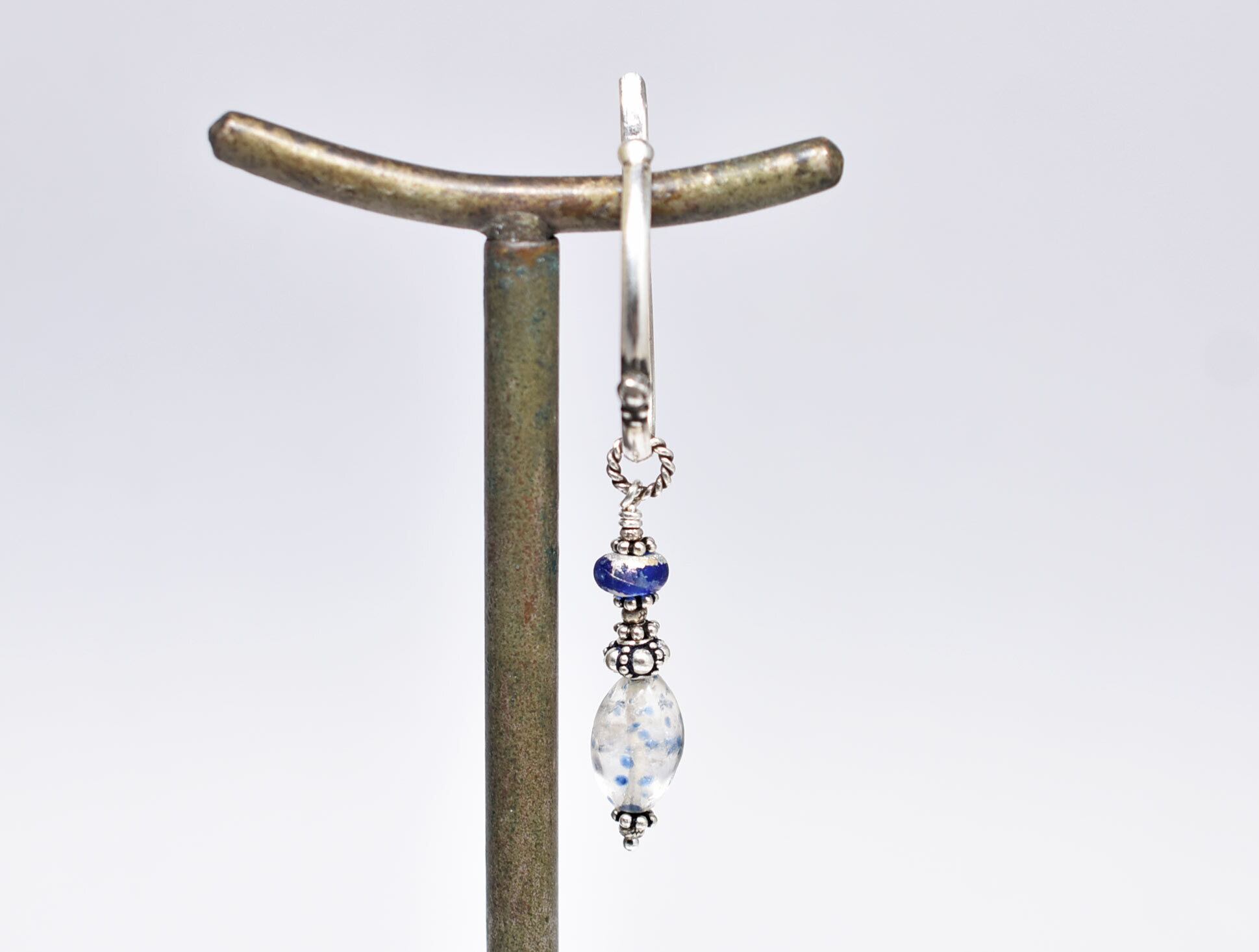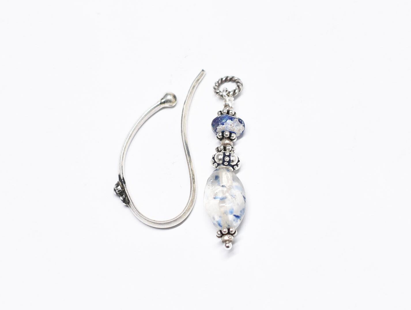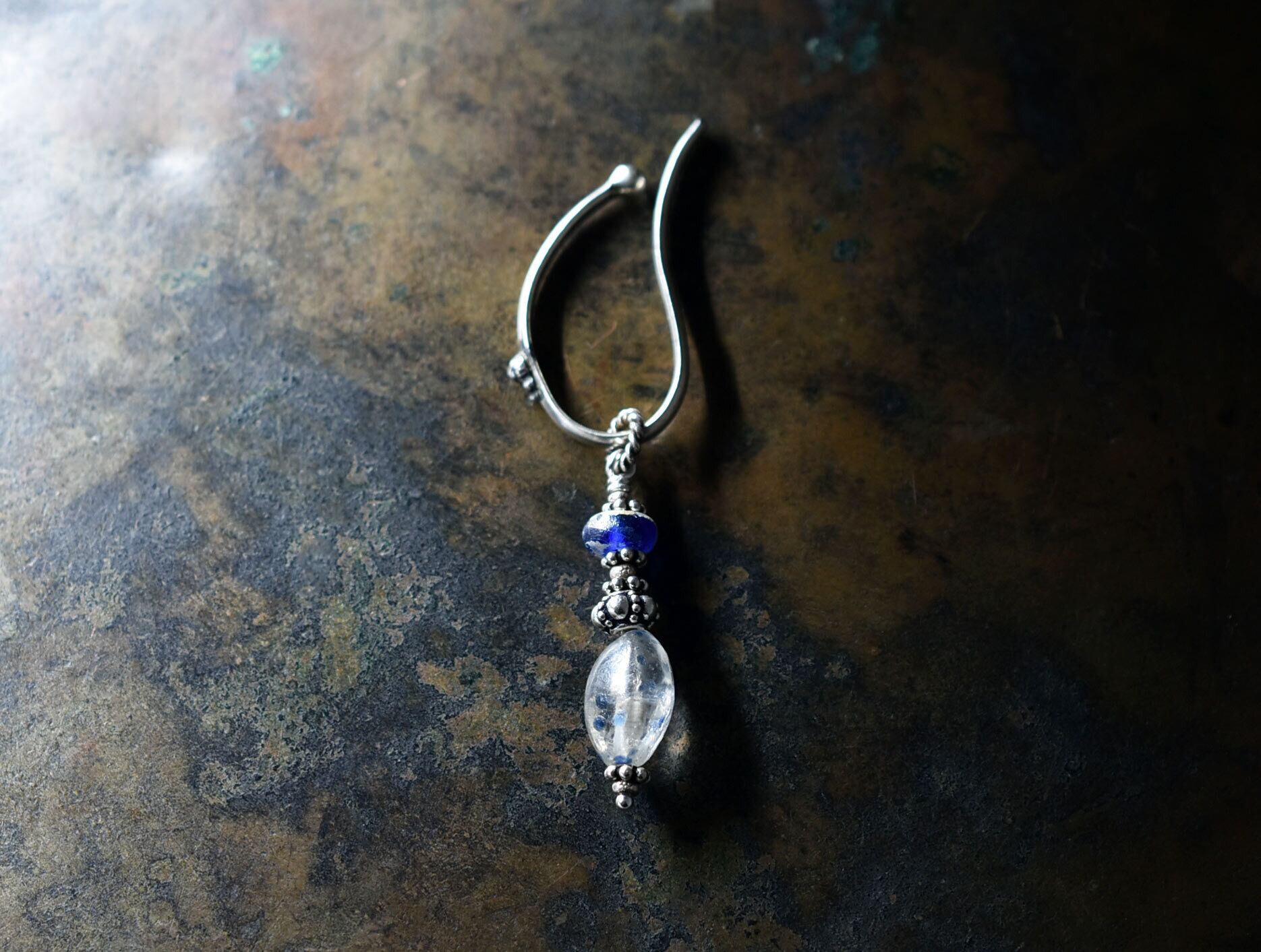 古代施釉水晶と銀化ローマングラスビーズ、シルバービーズを繋いだインドシルバーイヤーカフです。