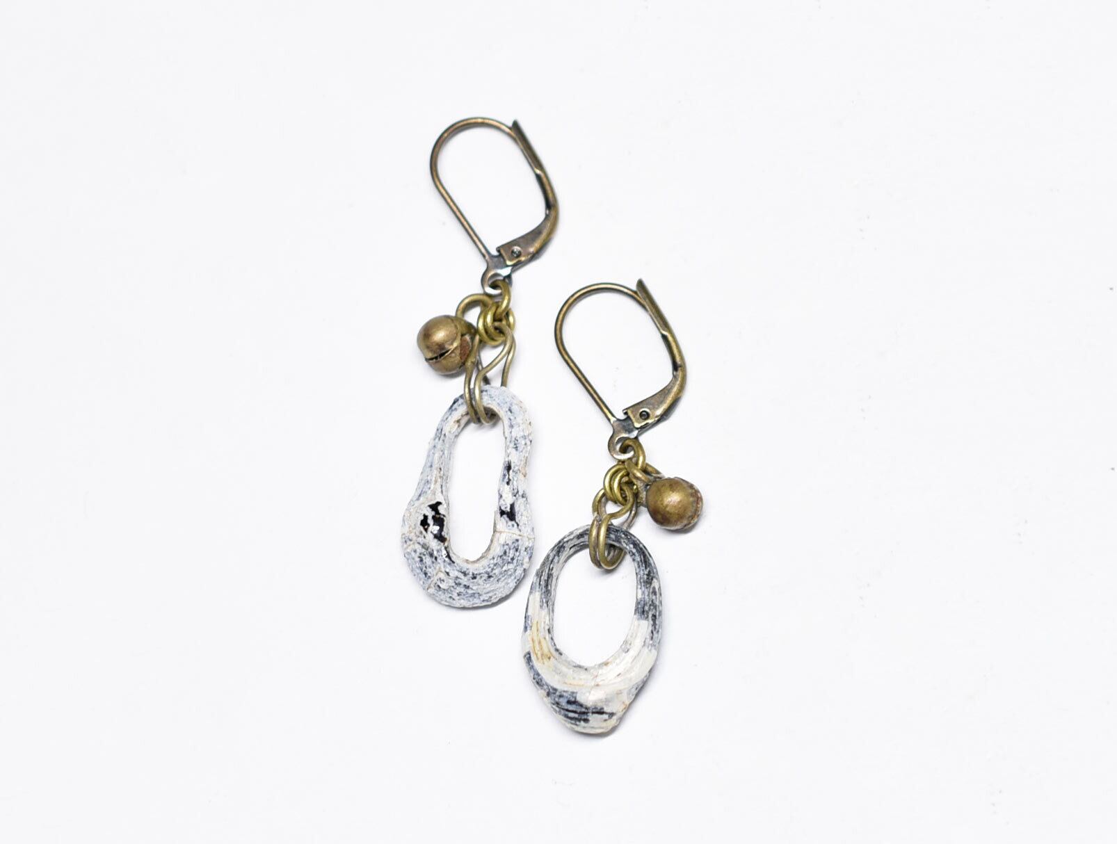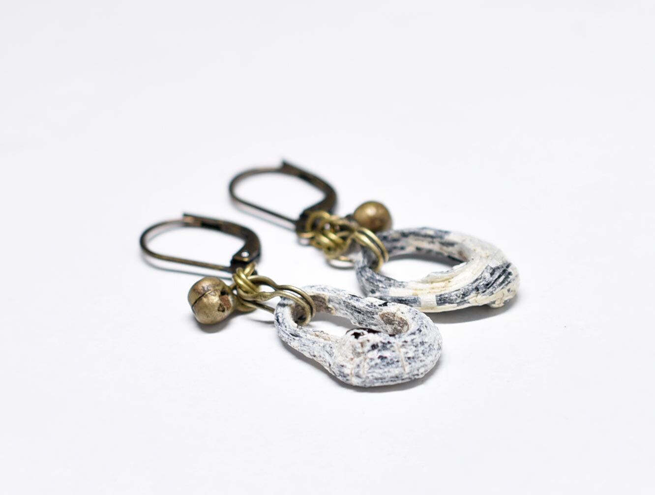 銀化ローマングラスリングビーズと民族鈴を繋いだピアスです。