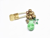 グリーンマーブルウエディングビーズとたわわな鈴&グリーン瑪瑙と白蝶貝、アフガンパーツのランドリーピンブローチ