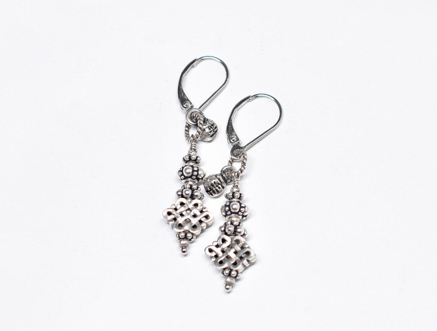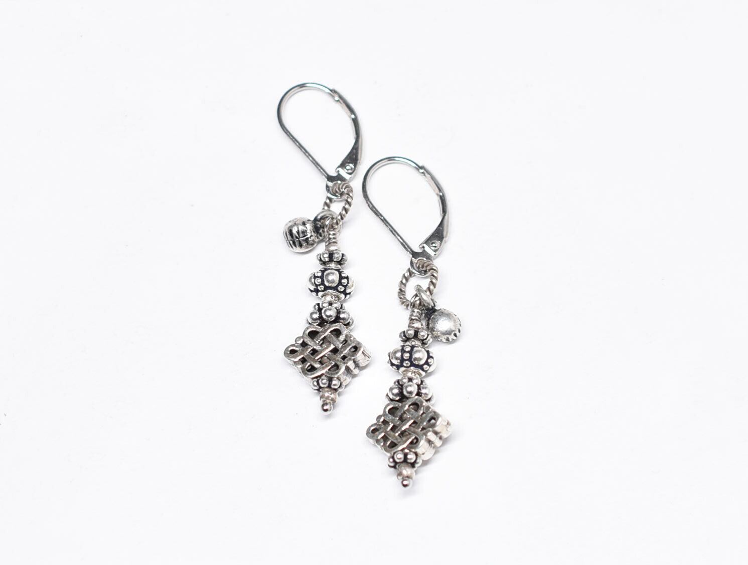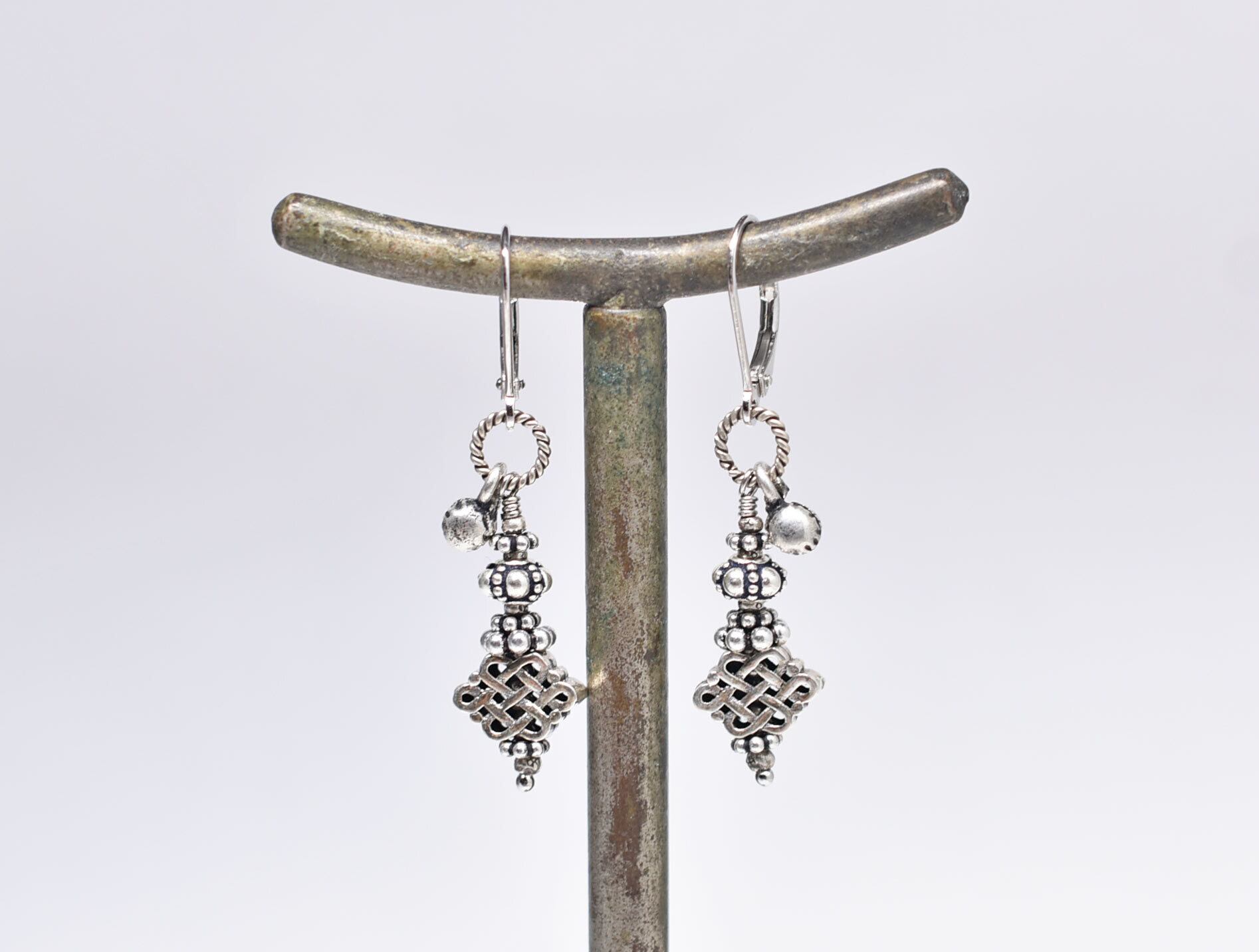 エンドレスノットとシルバービーズとインドシルバー鈴を繋いだピアスです。