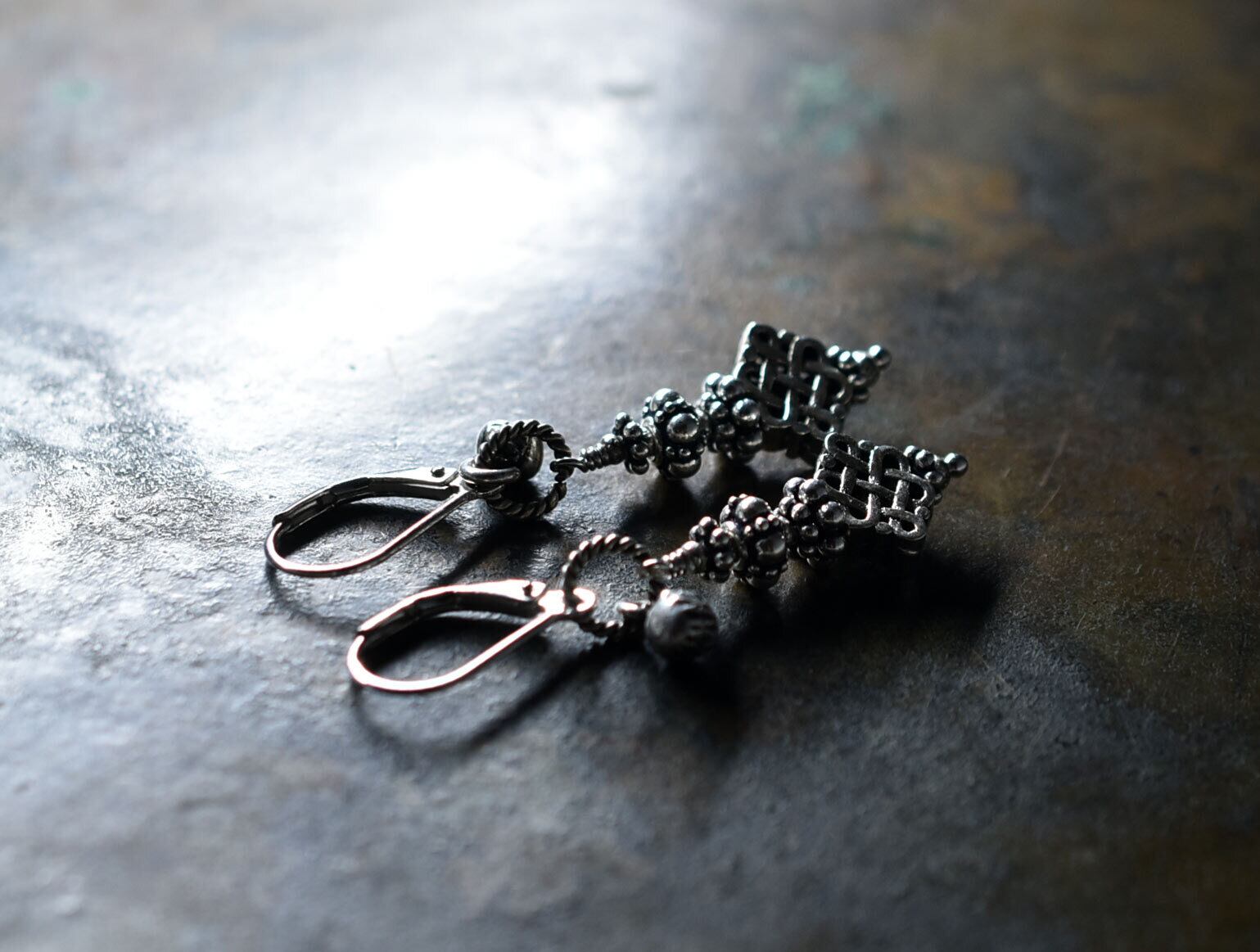 小さめなエンドレスノットが揺れるピアスです。