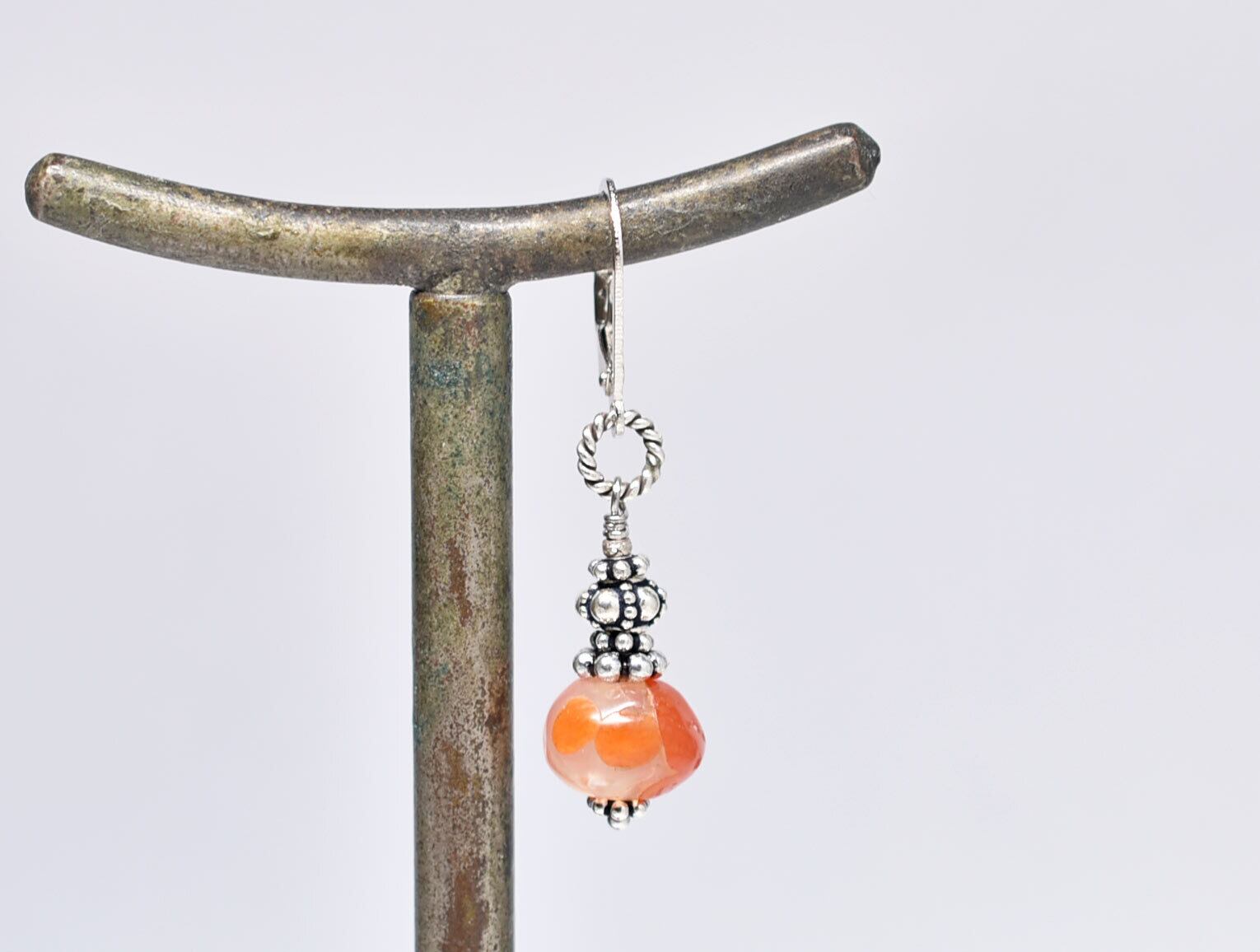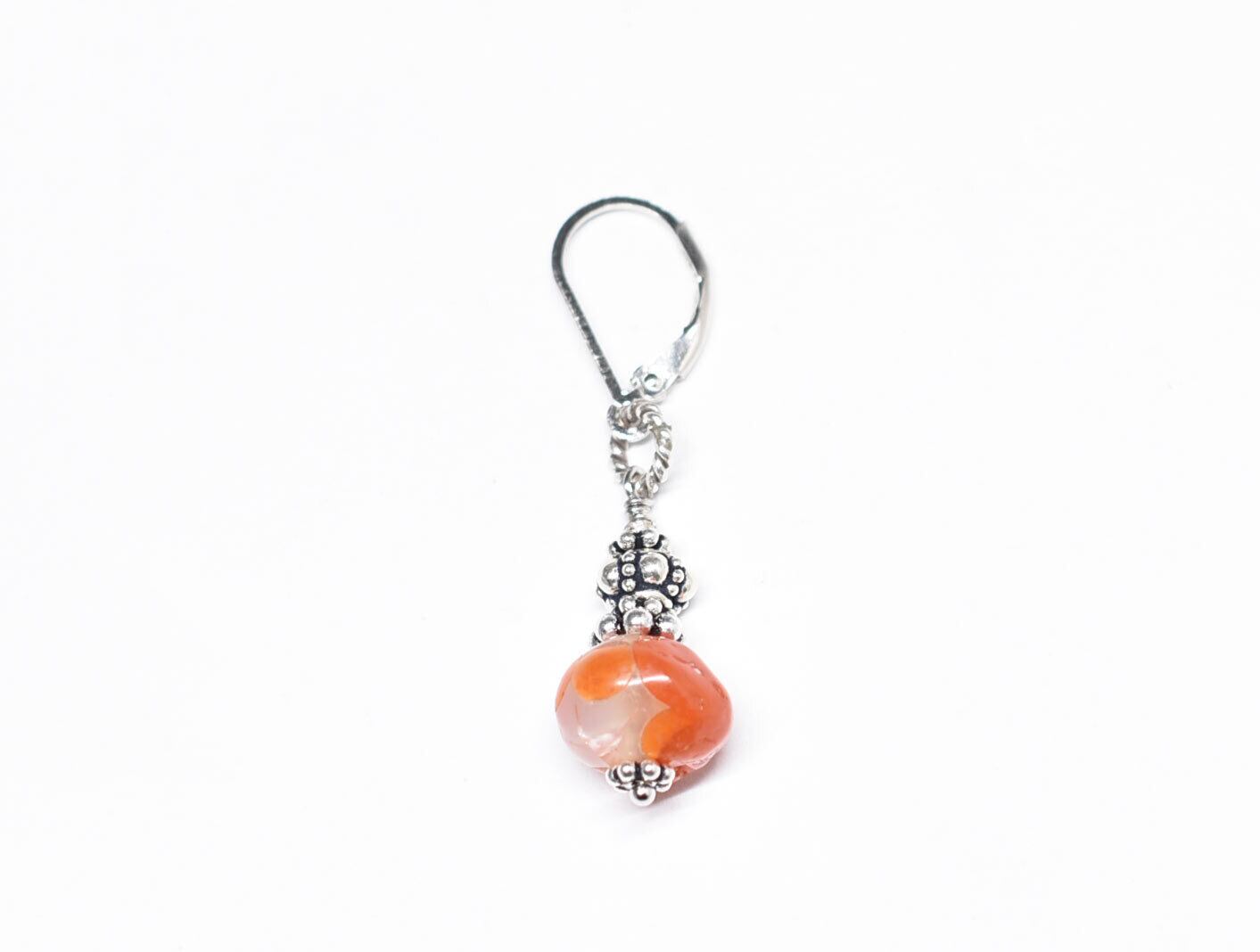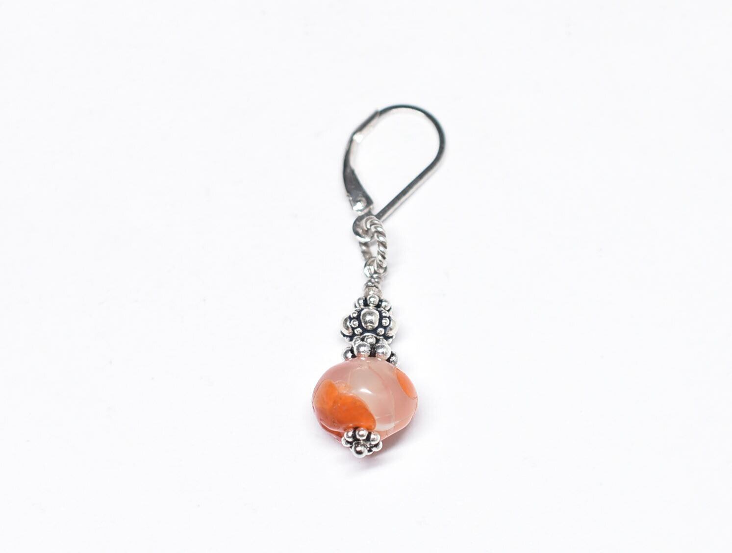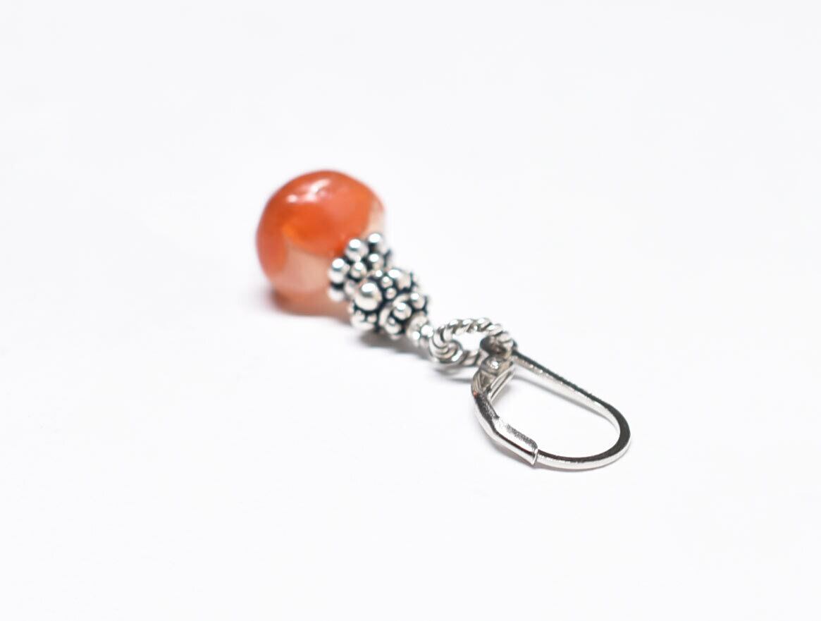 斑点模様古代カーネリアンとシルバービーズを繋いだ片耳ピアスです。