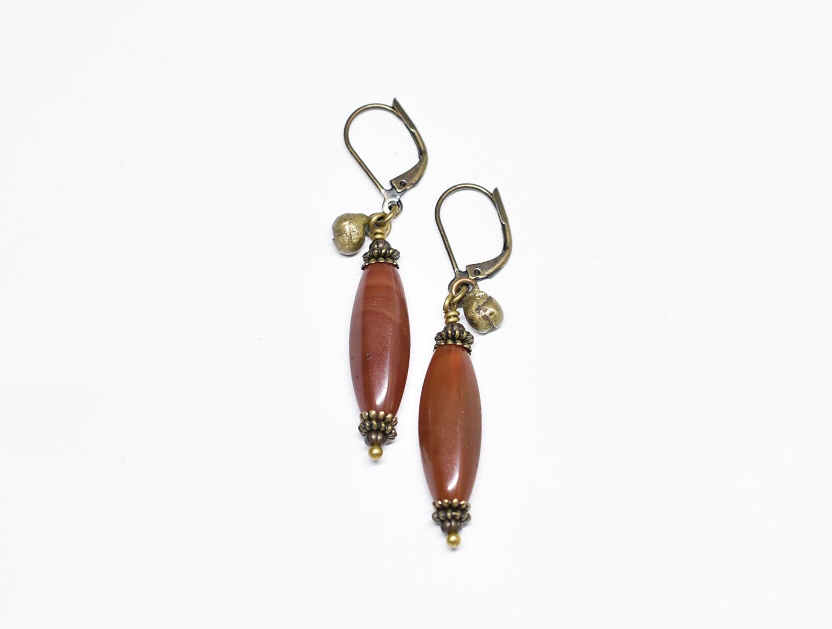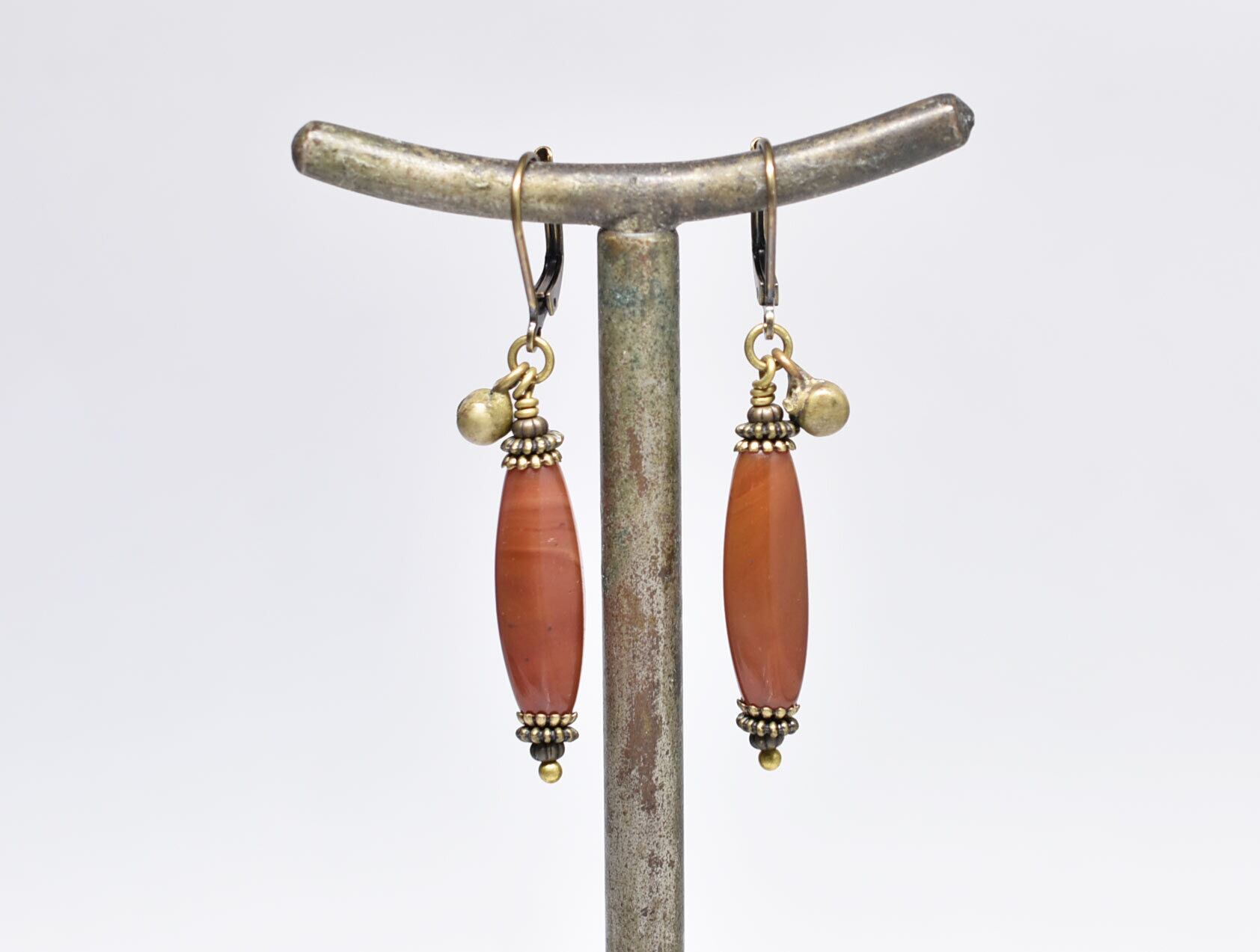 枯葉色アンティークボヘミアビーズと民族鈴のピアス