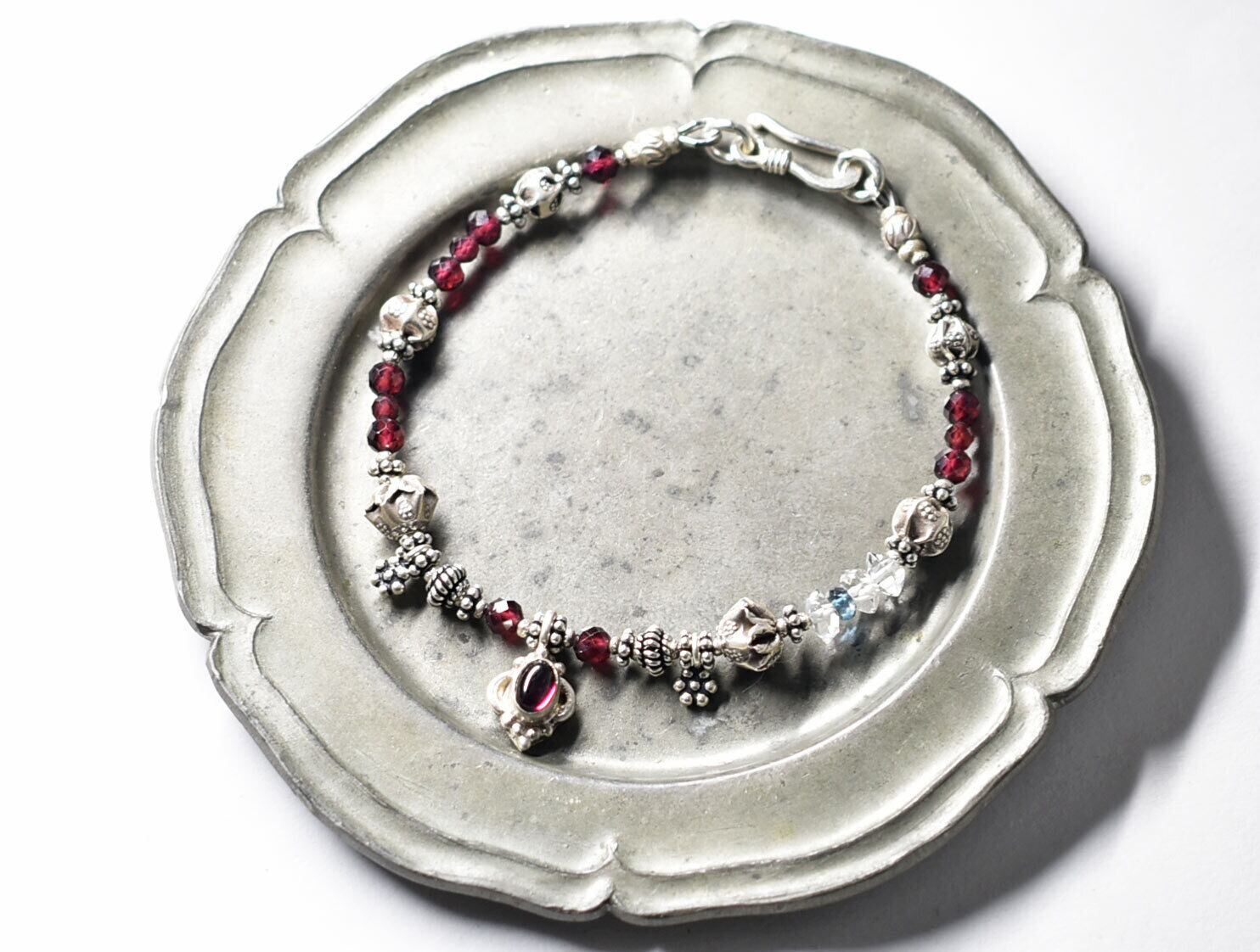 シルバー装飾ガーネットの横のプックリとしたシルバービーズは、一つ一つハンドメイドで作られたものです。