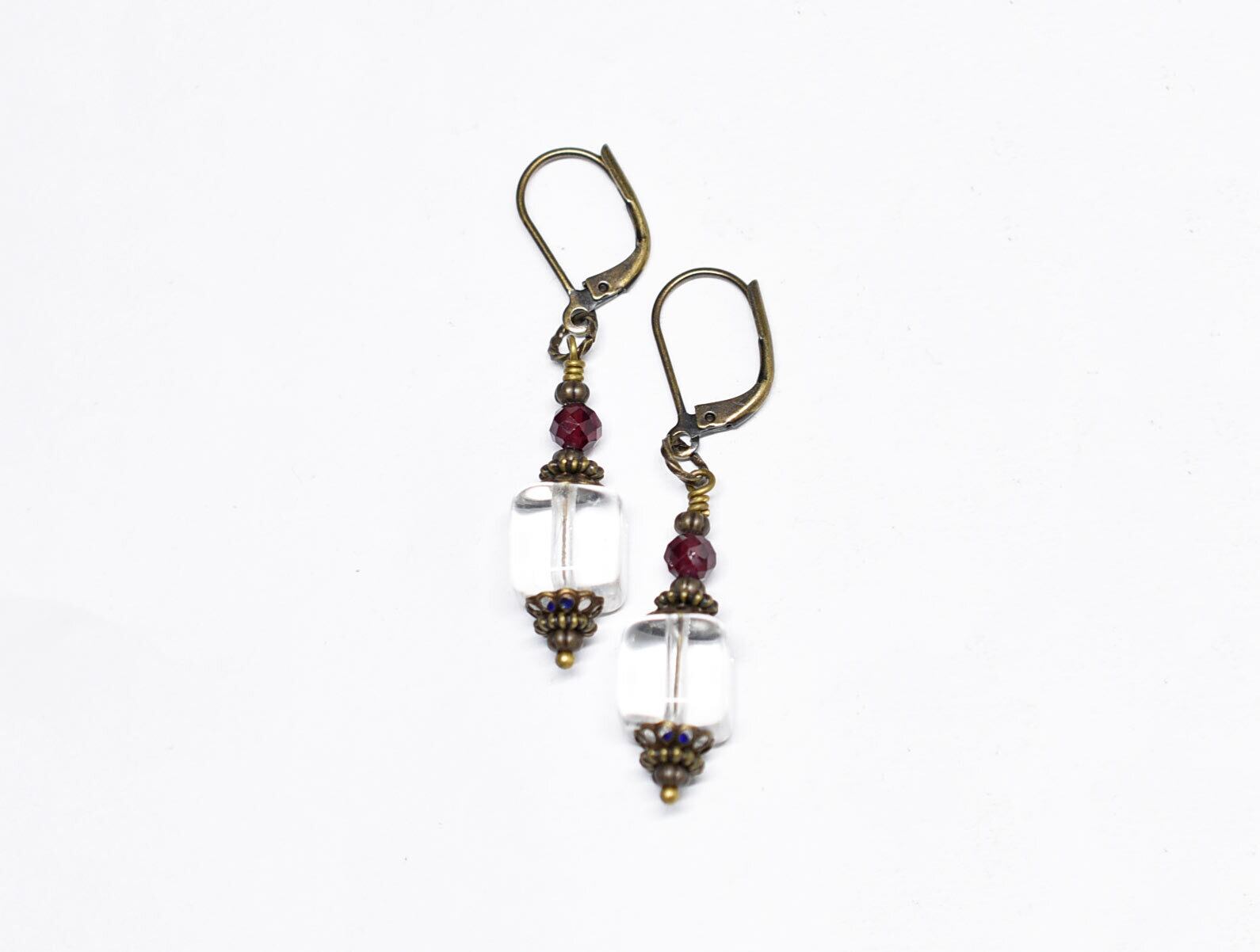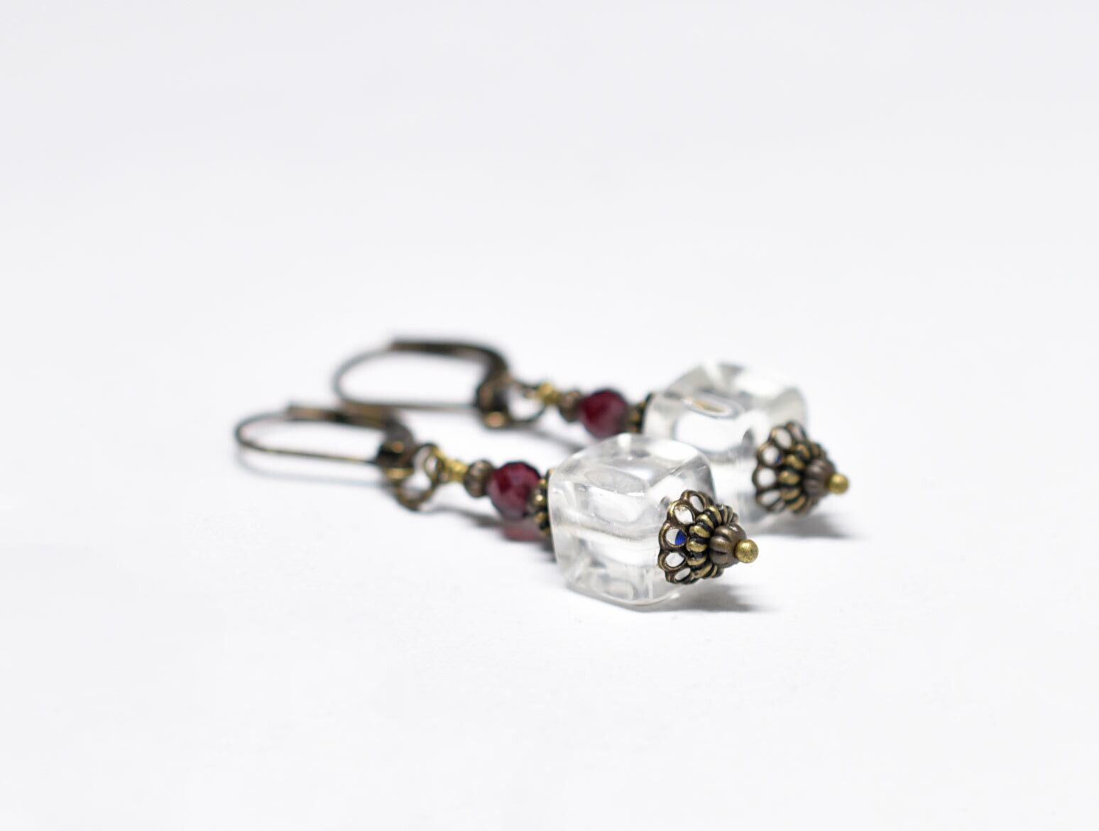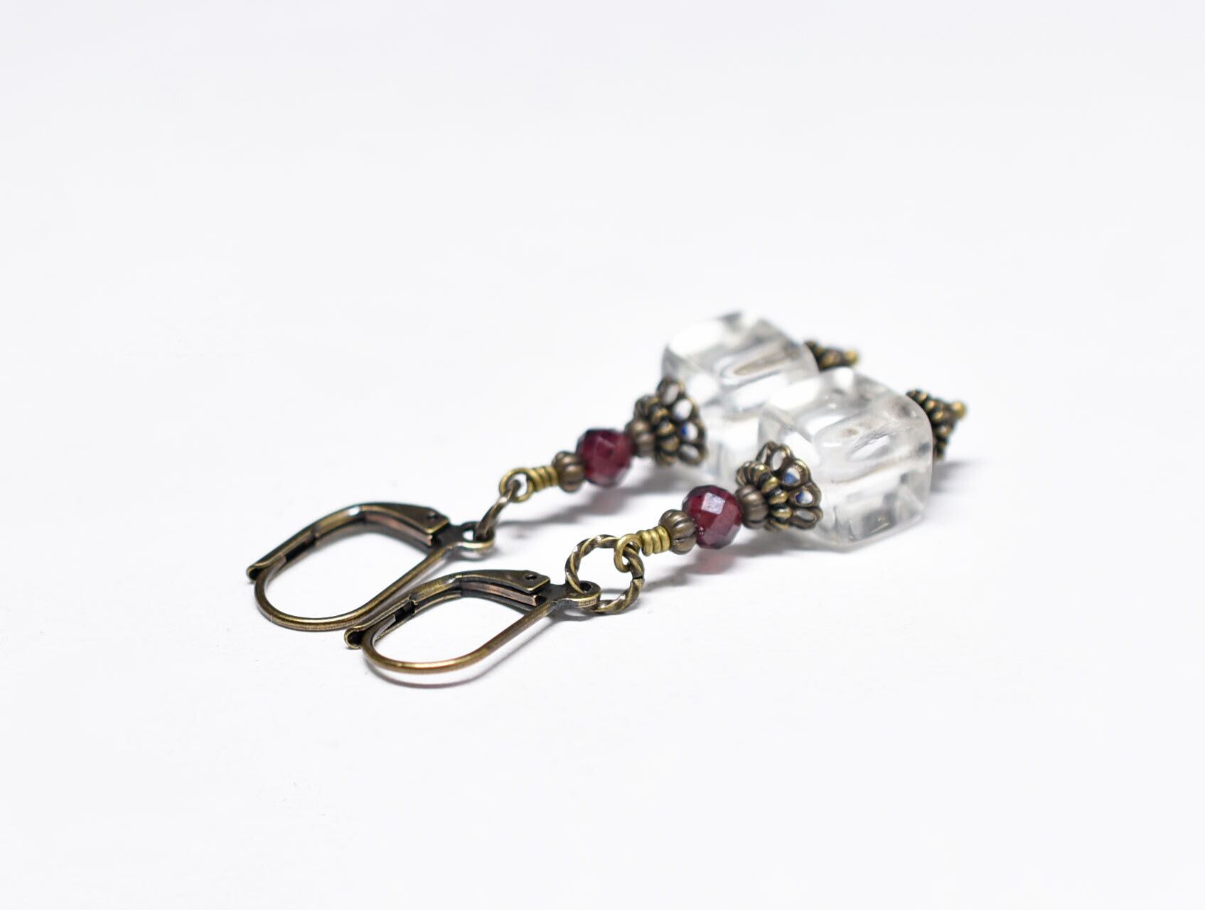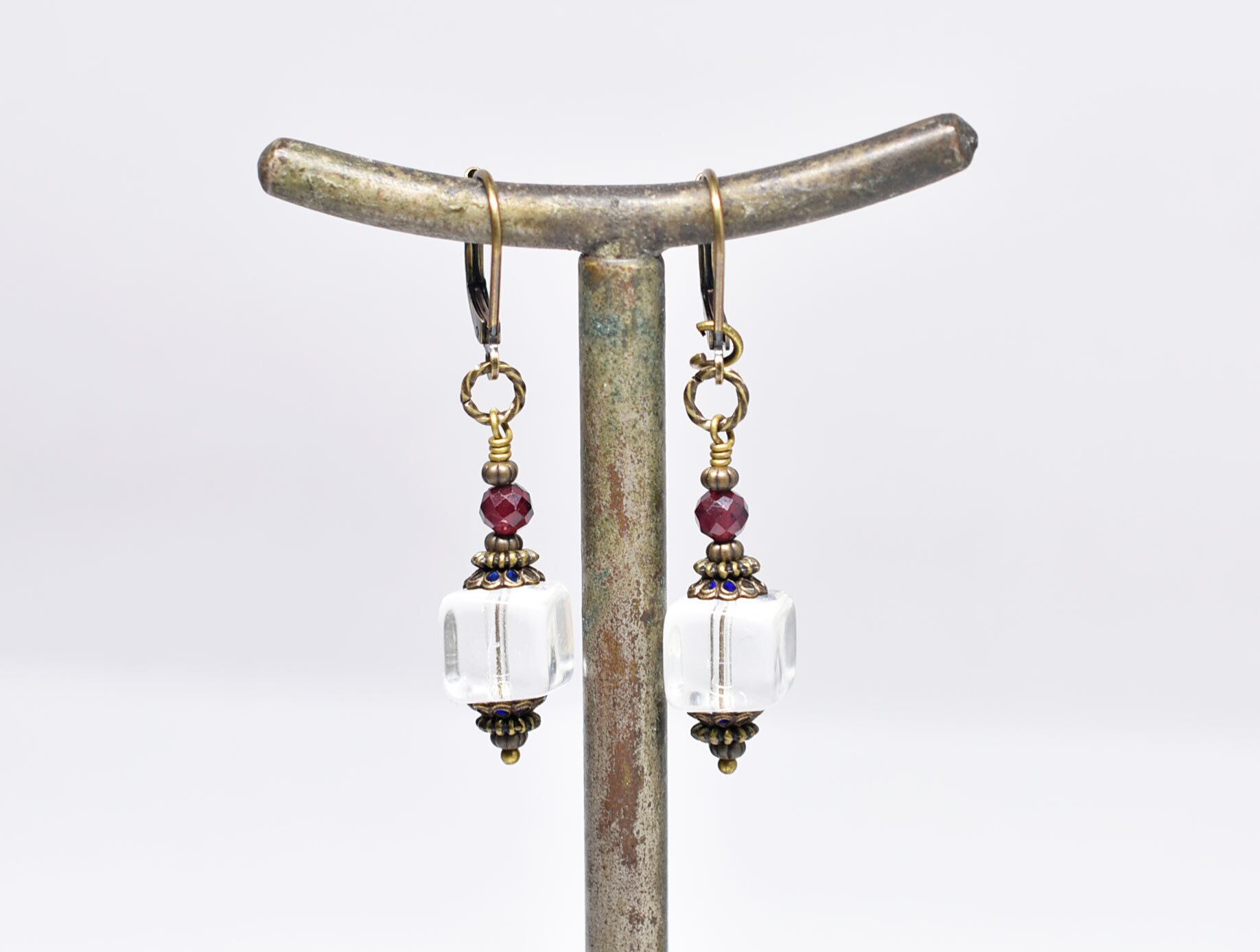 スクエアアンティークボヘミアビーズとガーネットのピアス