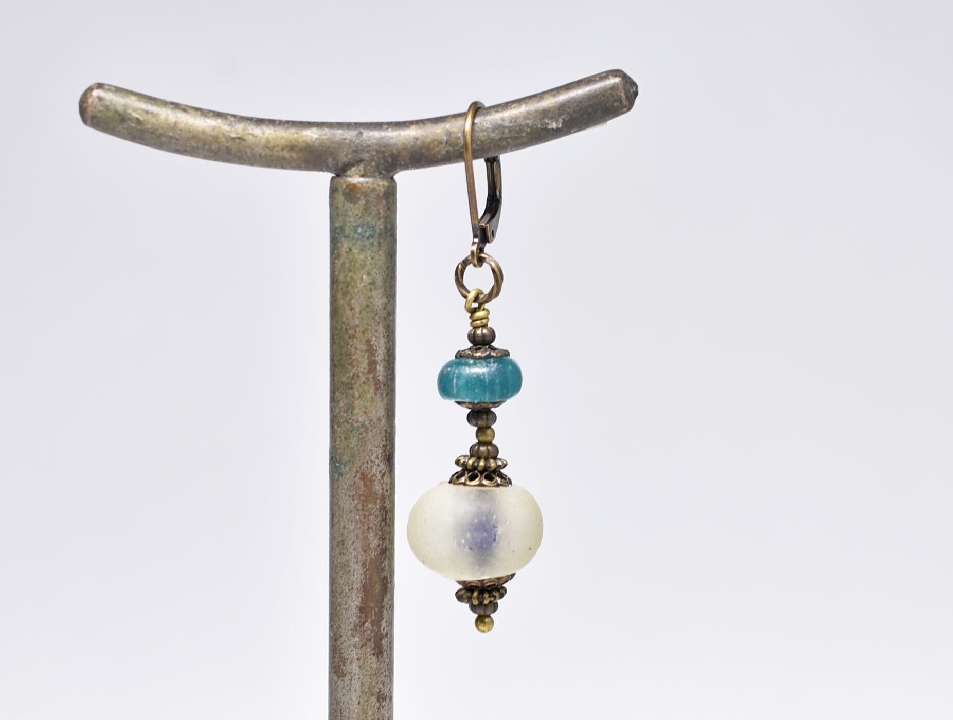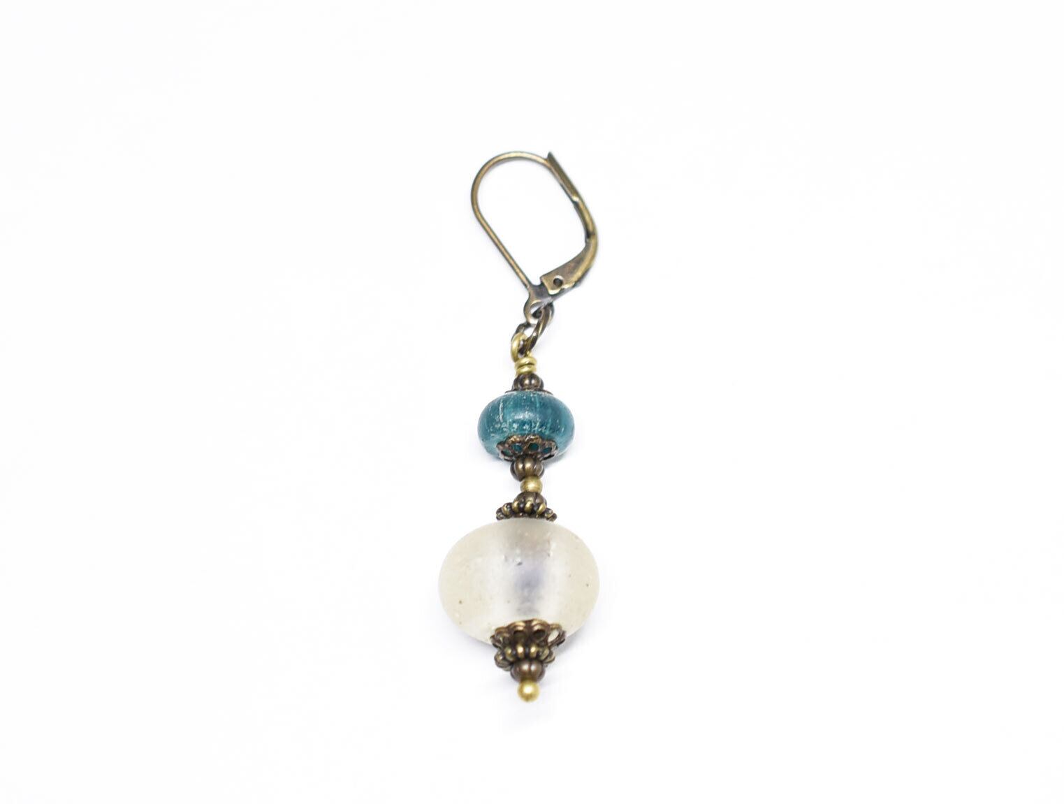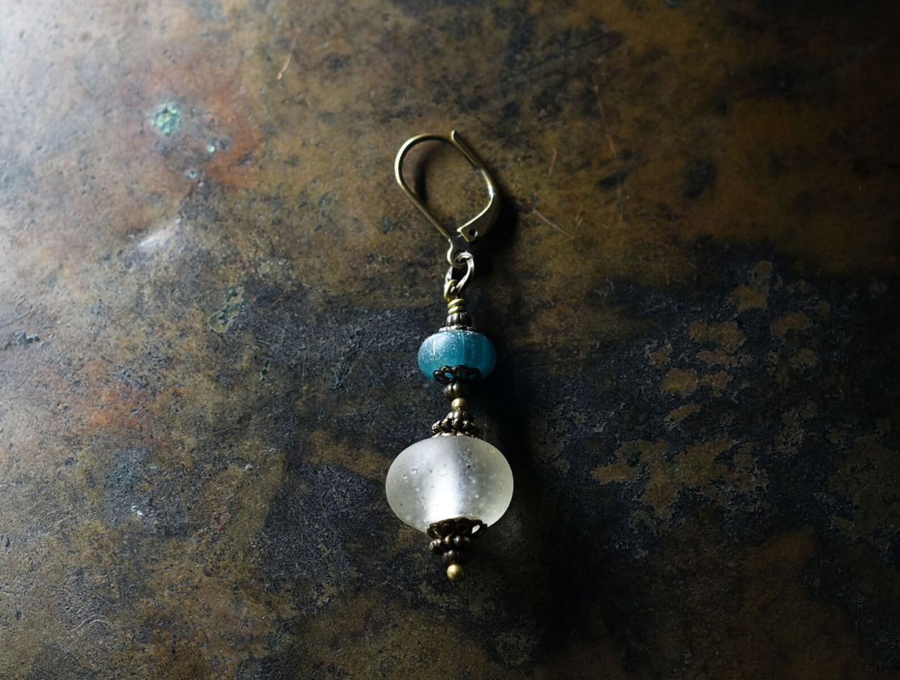 古いガラスの味わいと魅力を楽しめる片耳ピアスです。