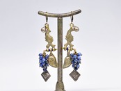 羽を閉じた孔雀のようなフォルムをしたパーツ、ペイズリーの様なパーツ、ダイヤ型のパーツ、鈴はアフガニスタンから届いた古いメタルパーツです。