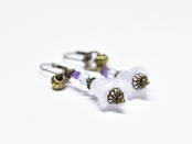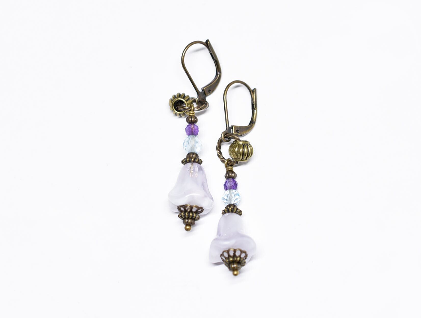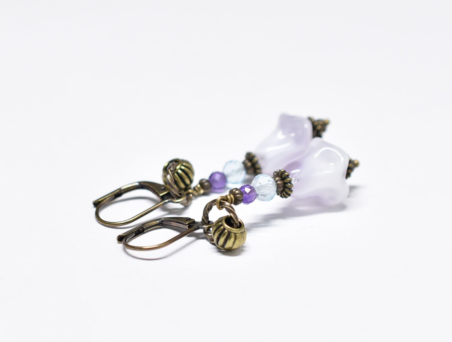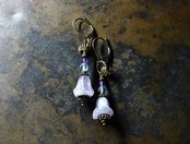 エンジェルトランペットの様なドイツヴィンテージビーズとブルートパーズ&アメジストのピアス
