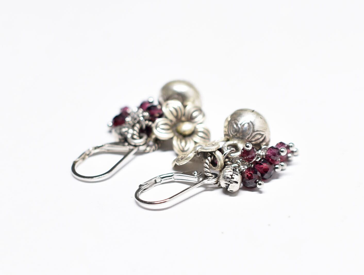 鈴とお花カレンシルバー、たわわなガーネット、インドシルバー鈴のピアス