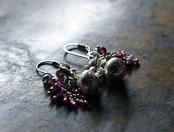 鈴とお花カレンシルバー、たわわなガーネット、インドシルバー鈴を繋いだピアスです。