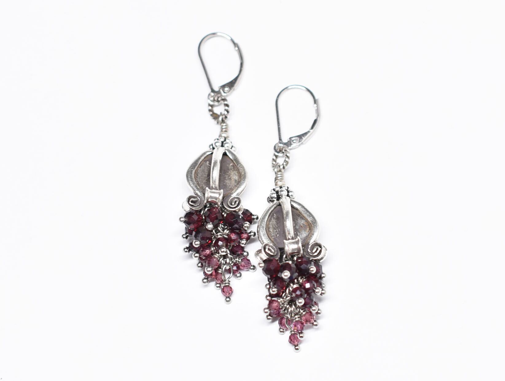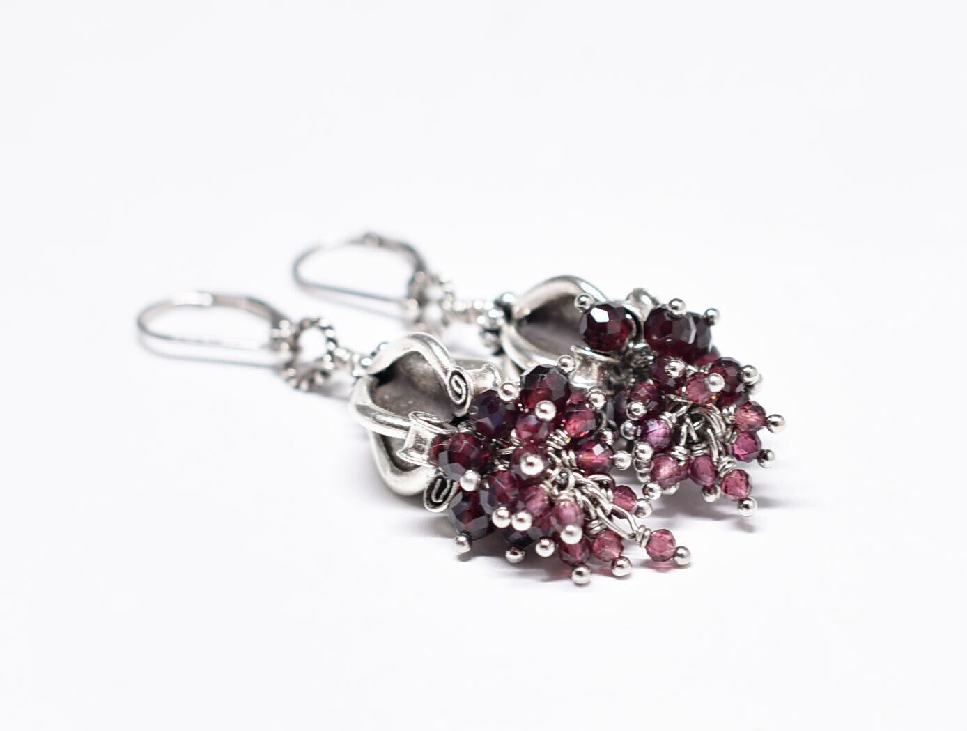 ドークラックカレンシルバー、たわわなガーネットのピアス