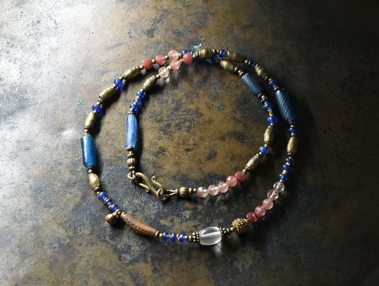 様々な時代の、様々な素材を繋いだネックレスです。