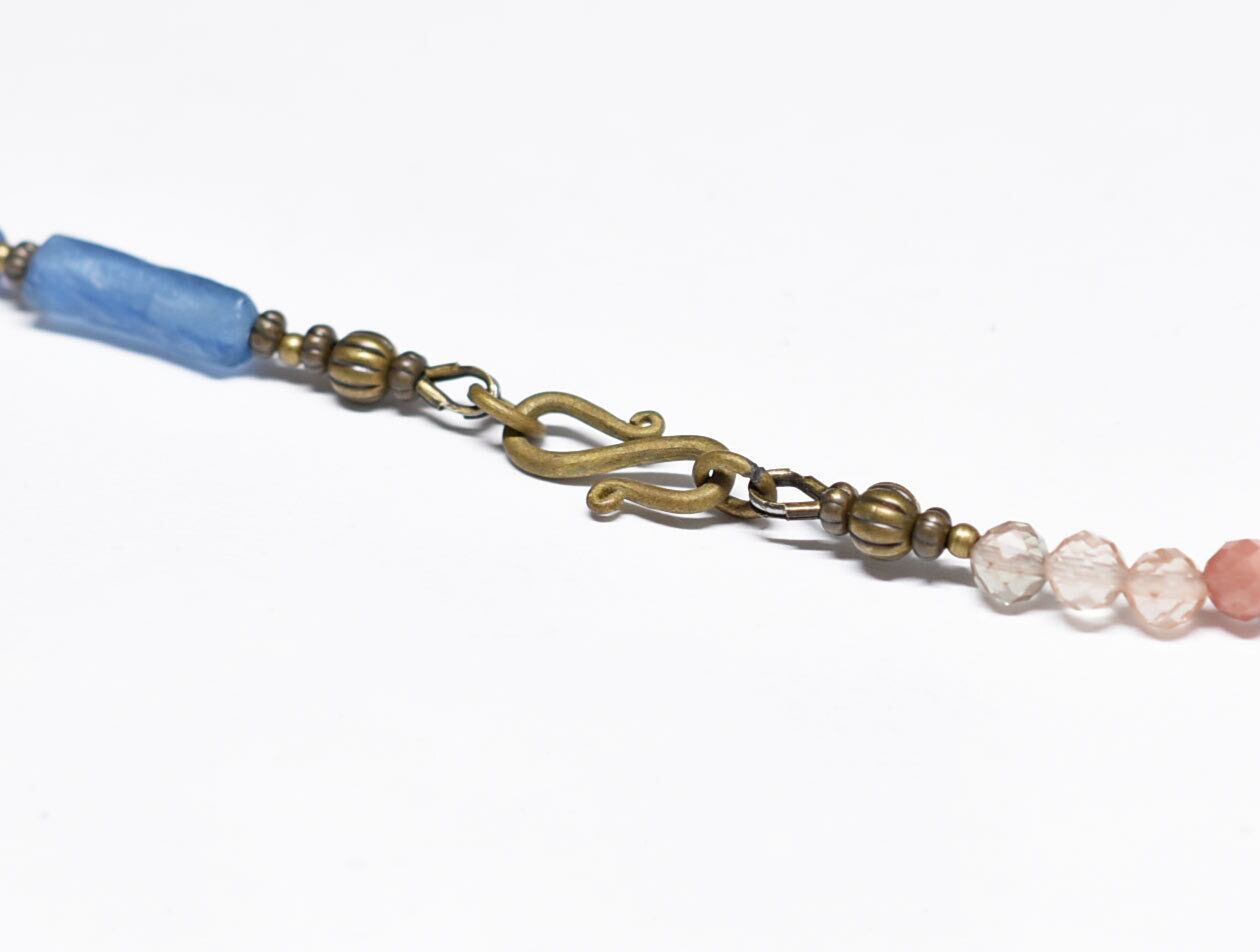 ブルービーズの間の金色のビーズは18金コーティングされたカレンシルバーです。