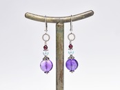 ザンビア産アメジストとブルートパーズ、ガーネットのピアス