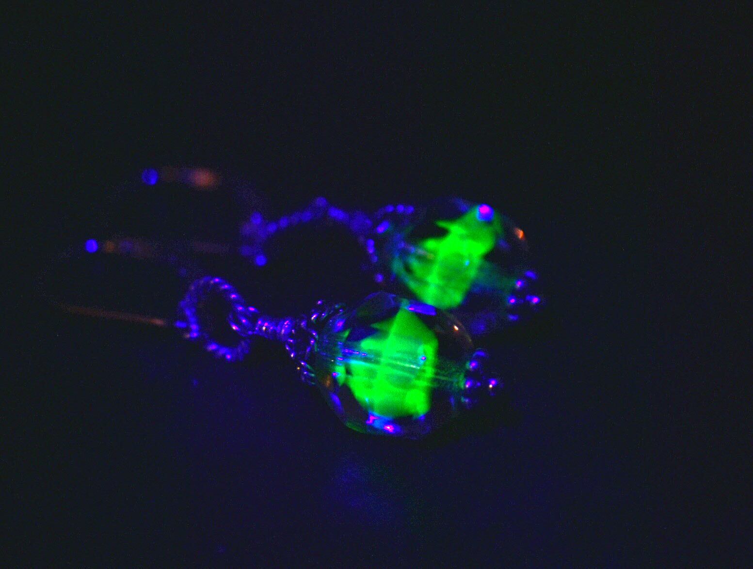 カットが施されたビーズはチェコから届いたウランガラスビーズです。