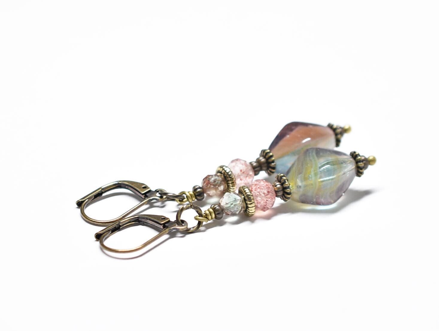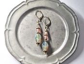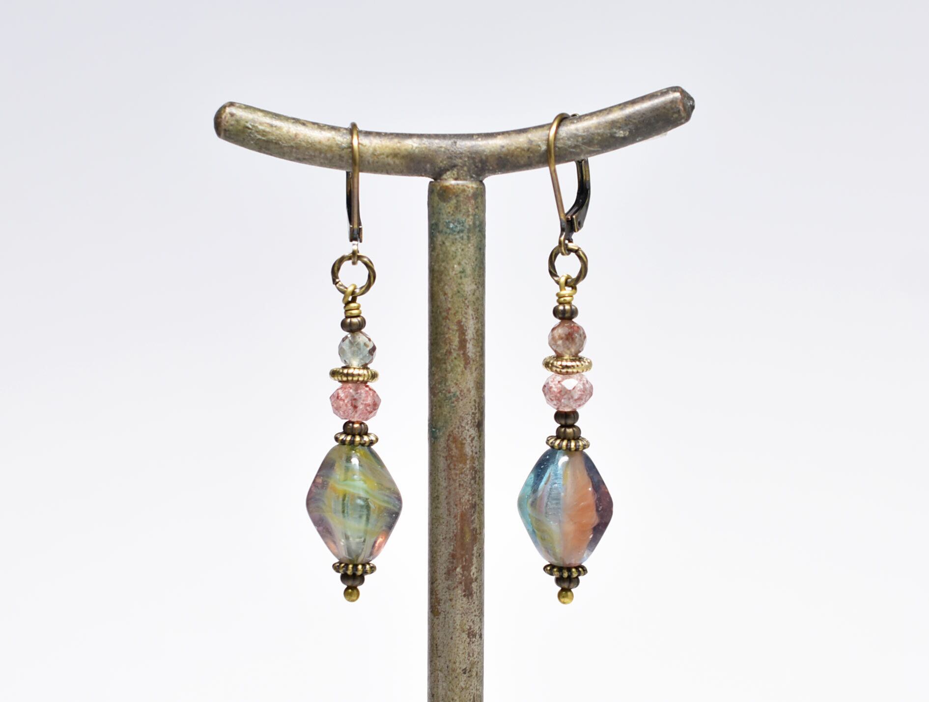 チェコヴィンテージビーズとストロベリークォーツ、アンデシンを繋いだピアスです。