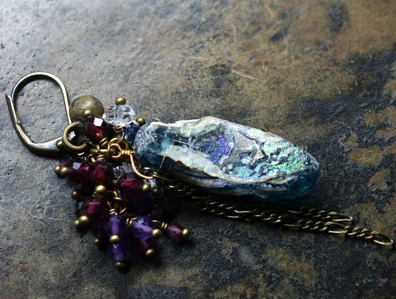 素材:ガラス、真鍮、ミックスメタル、ハーキマーダイヤモンド、ガーネット、アメジスト、カイヤナイト、カレンシルバー
