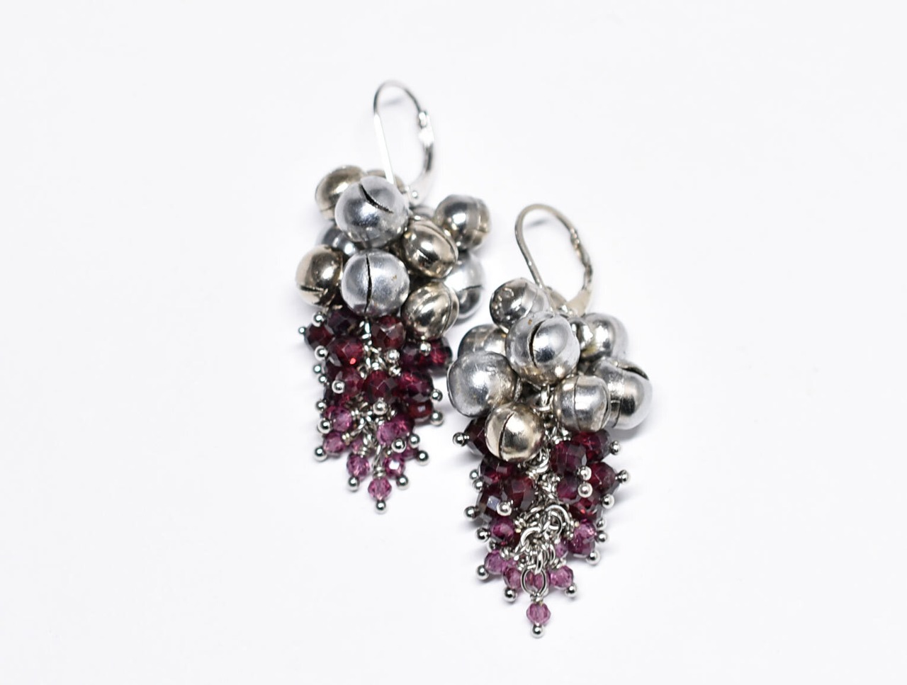 たわわな鈴とガーネットを繋いだ少しボリュームのあるピアスです。