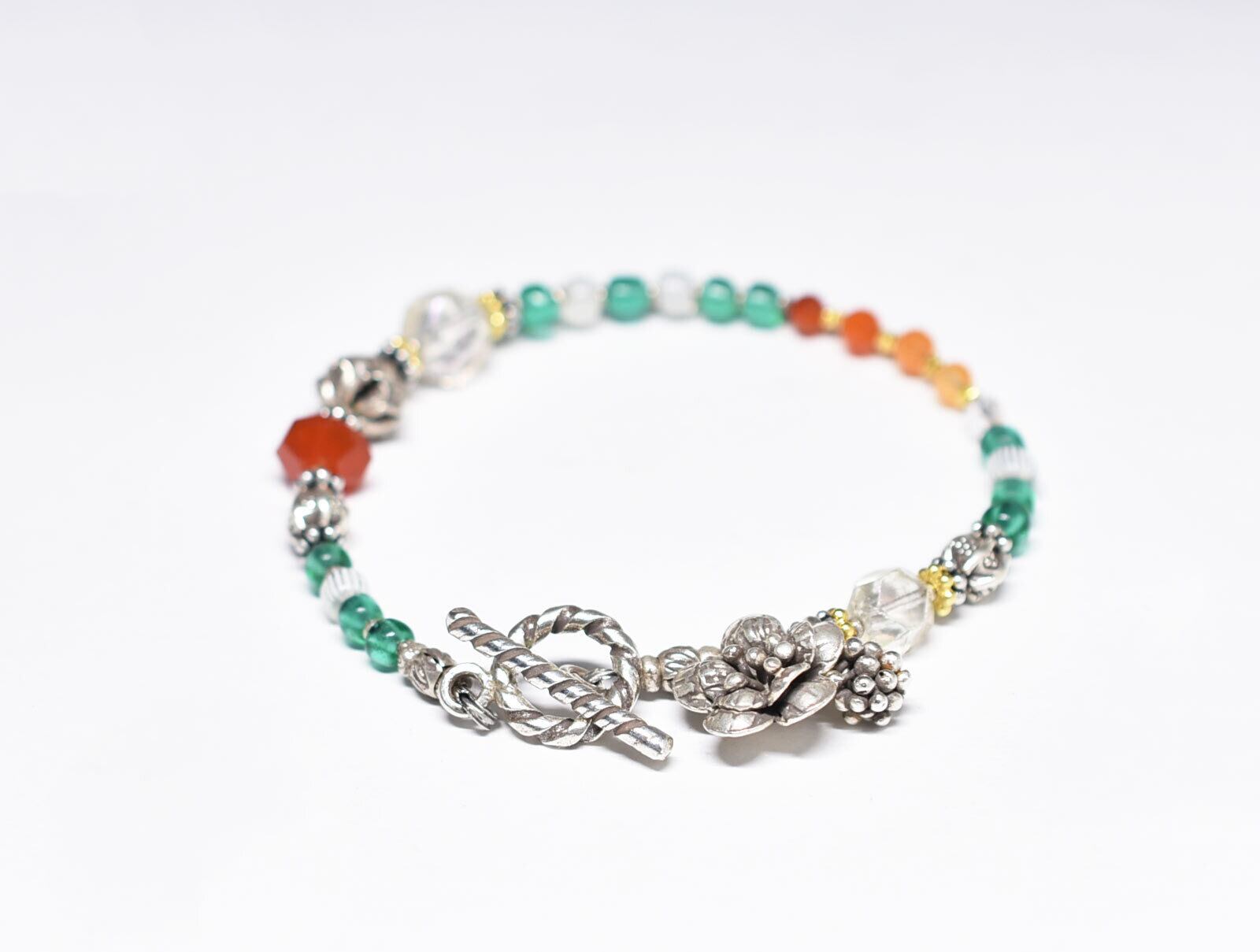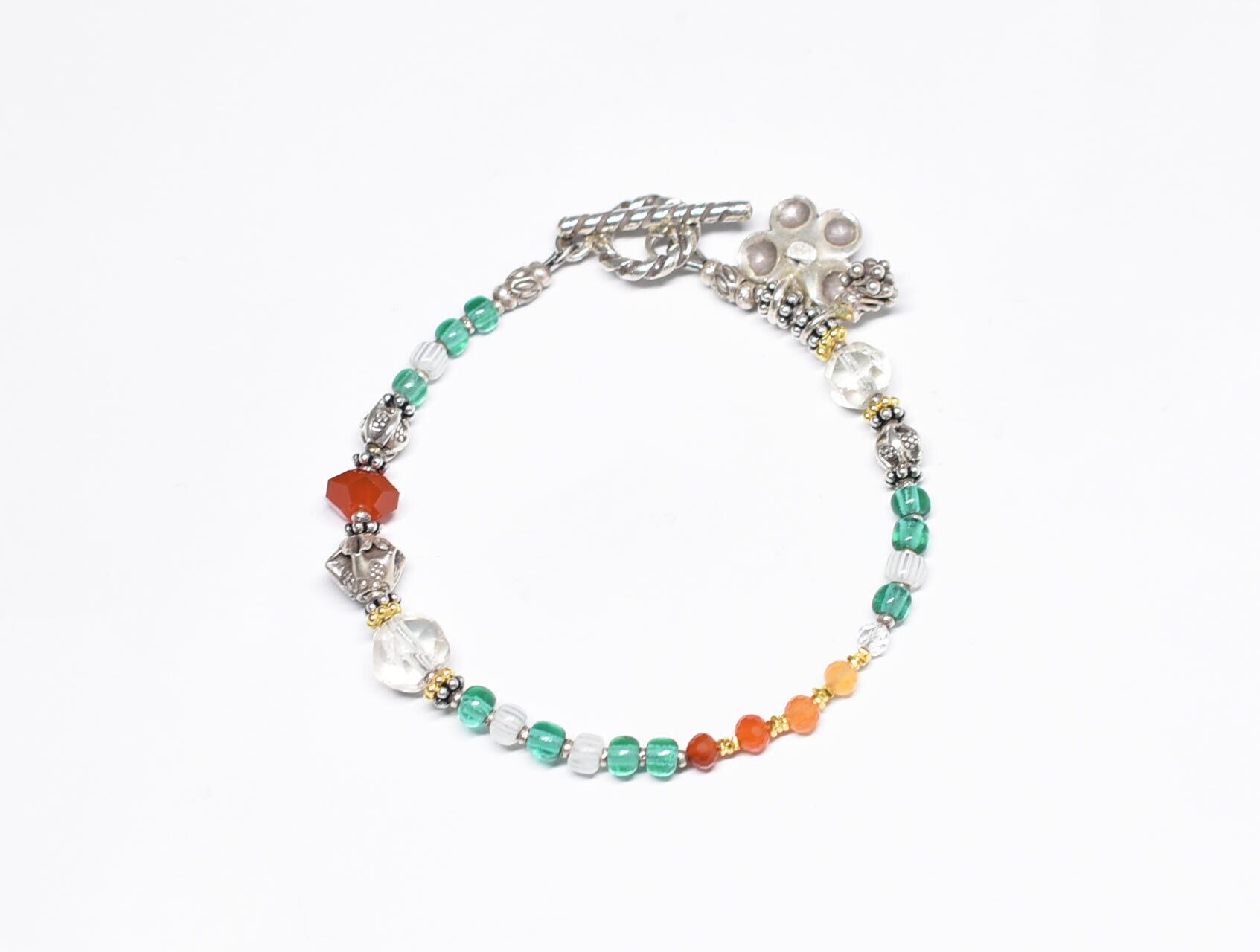 ヴィンテージオーロラビーズとカレンシルバー、ヴェネチアアンティークビーズ、カーネリアンのブレス