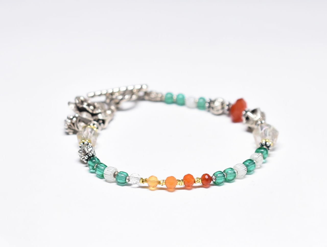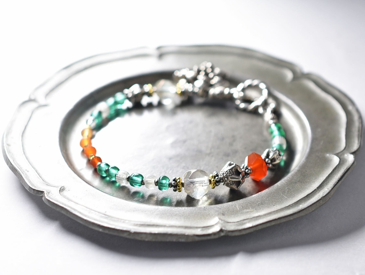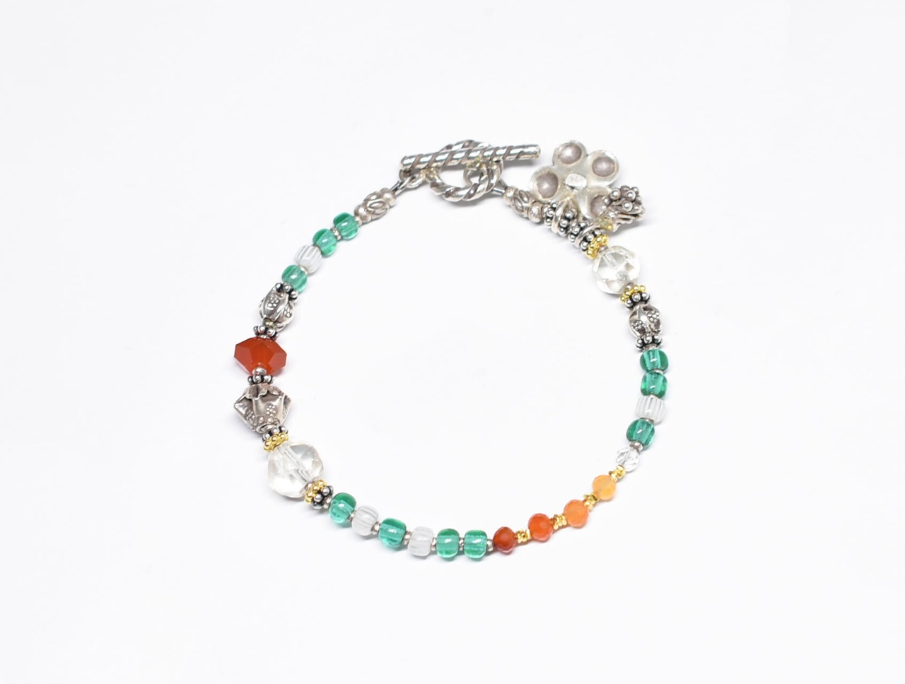ヴィンテージオーロラビーズとカレンシルバー、ヴェネチアアンティークビーズ、カーネリアンを繋いだブレスです。