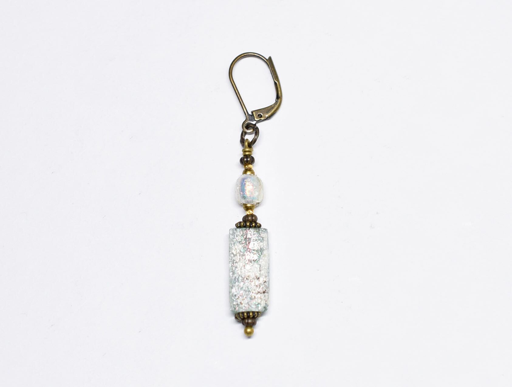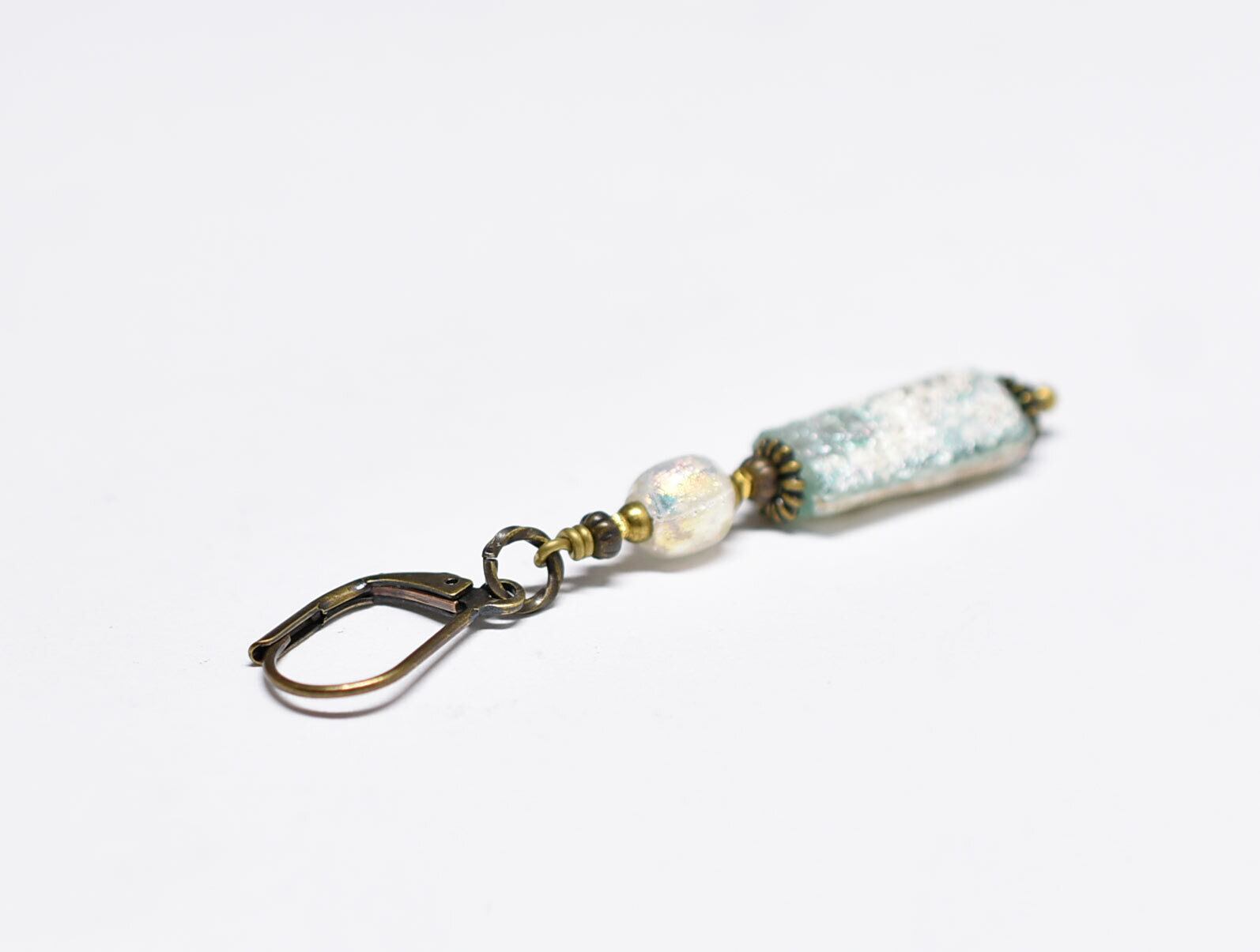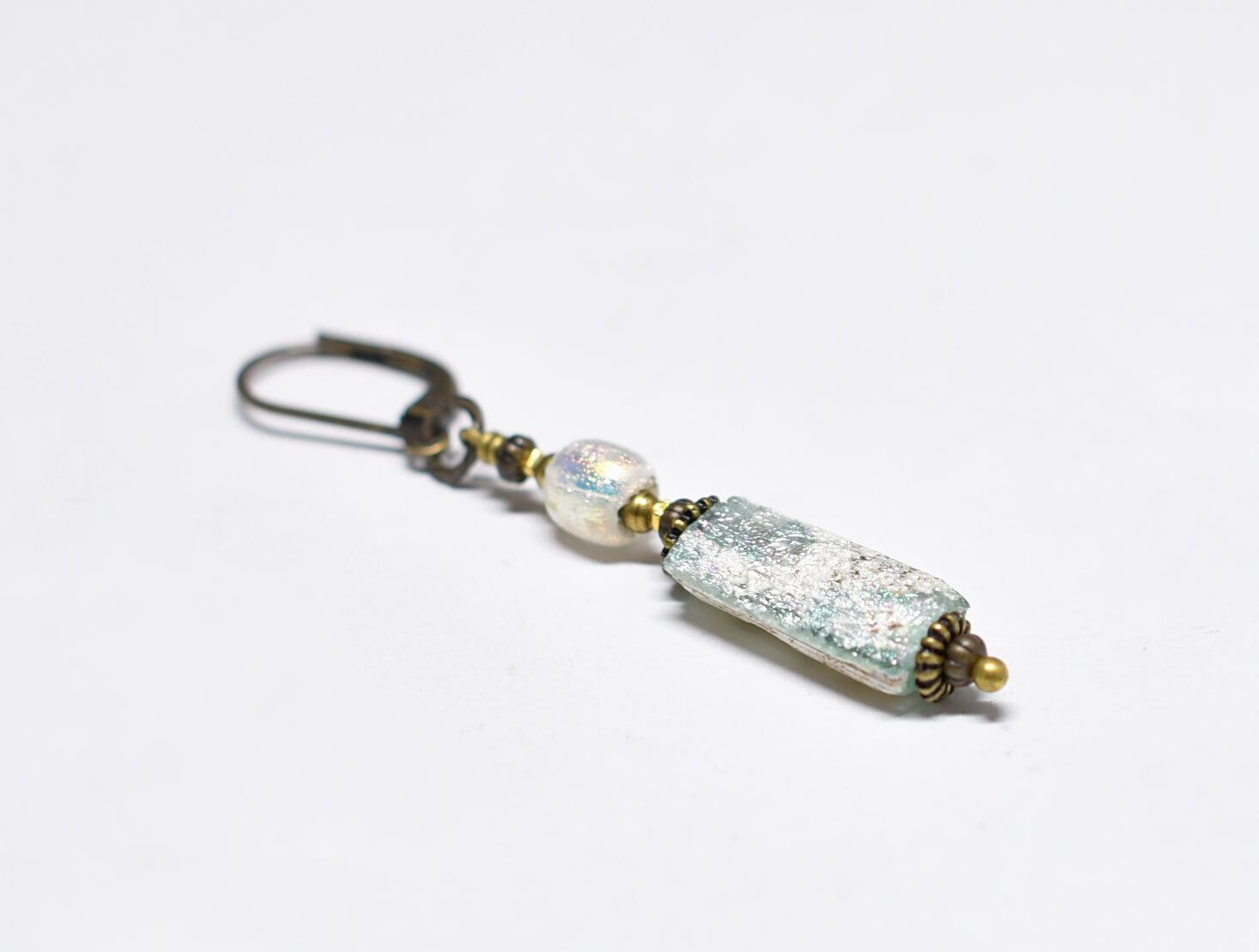 オパールの様な銀化の輝きローマングラスの片耳ピアス