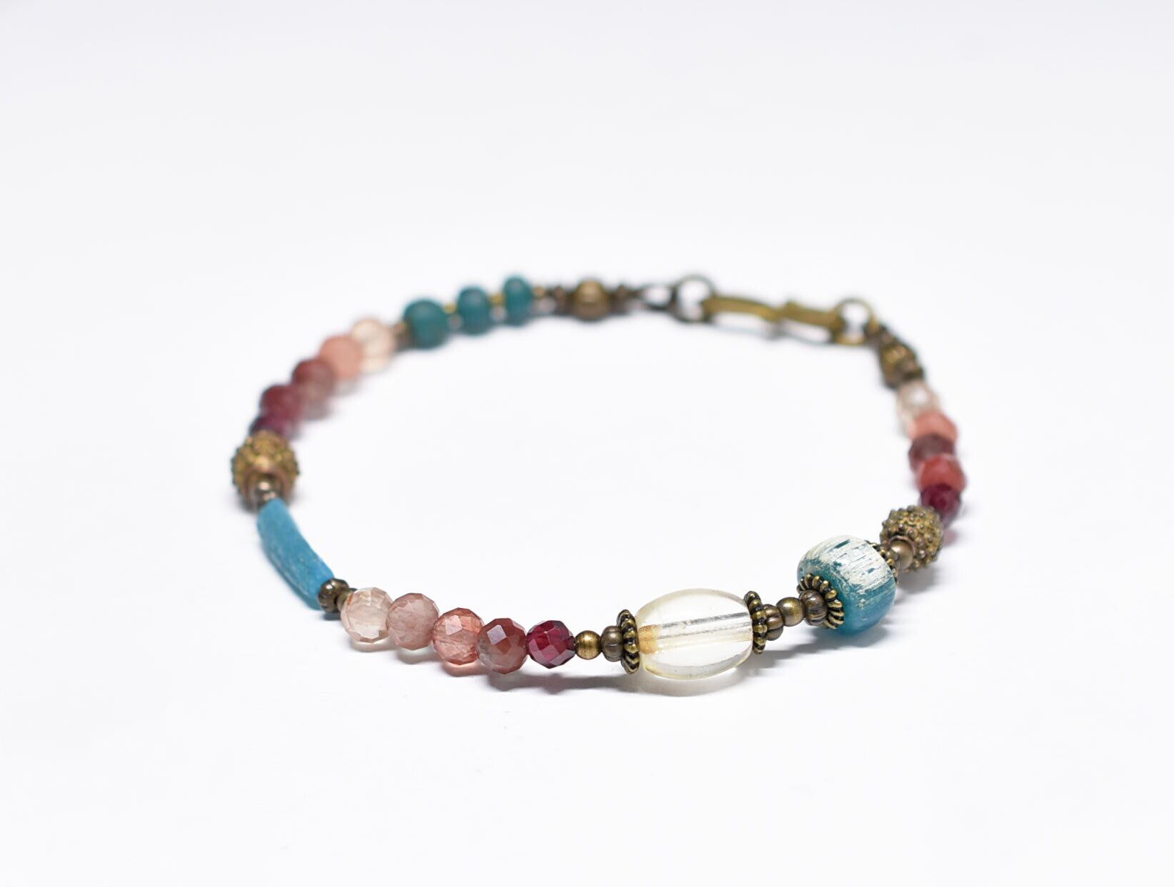 アンティークボヘミアビーズ、つぶつぶブラス、発掘ビーズ、ローマングラス、アンデシンのブレス