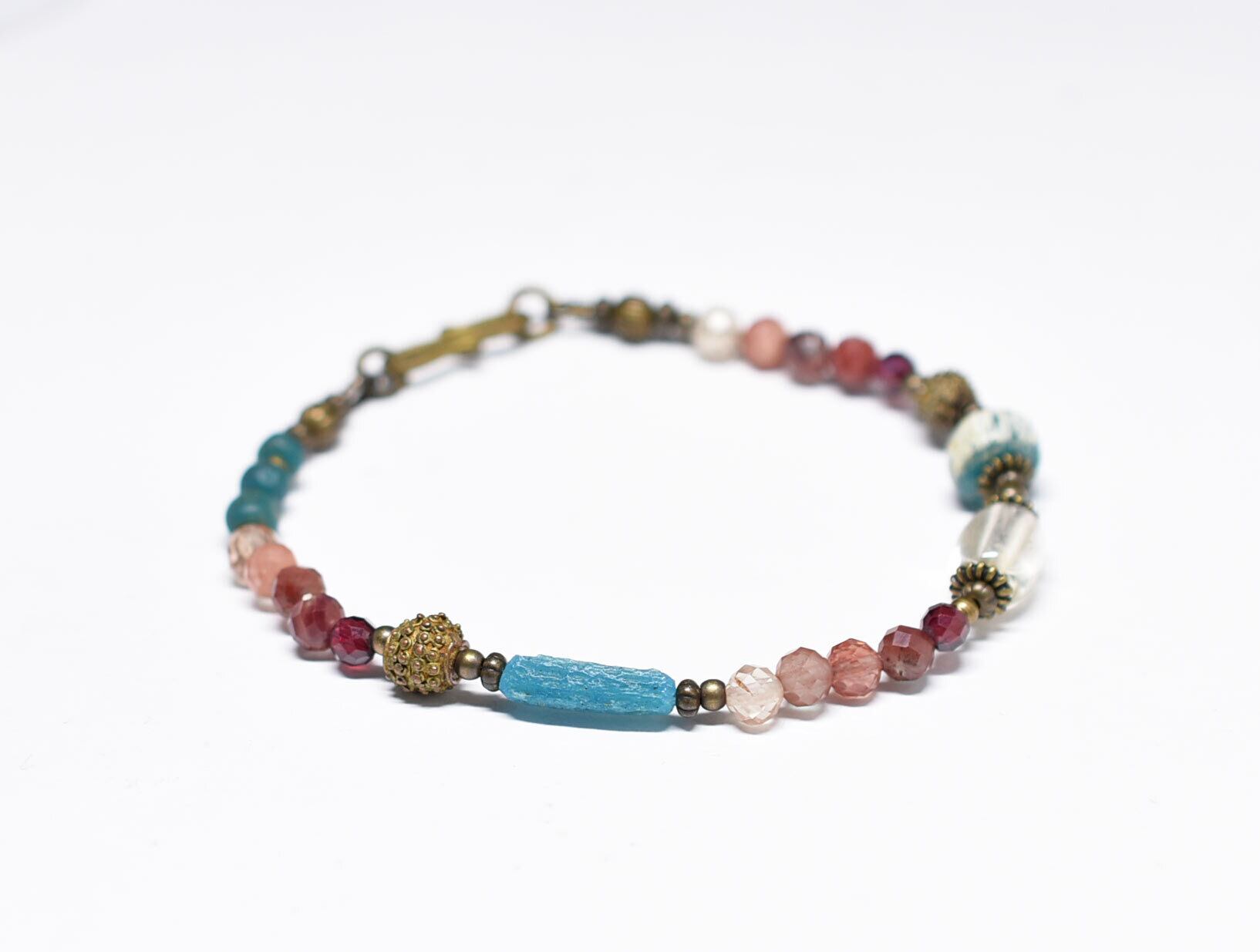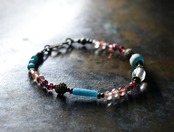 アンティークボヘミアビーズ、つぶつぶブラス、発掘ビーズ、ローマングラス、アンデシンなどを繋いだブレスです。