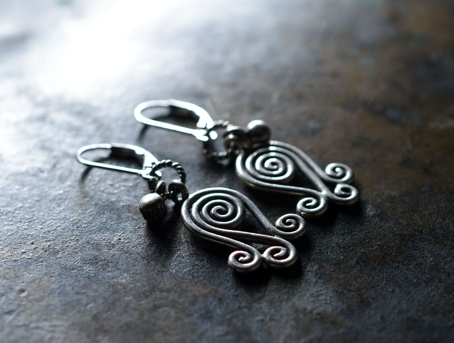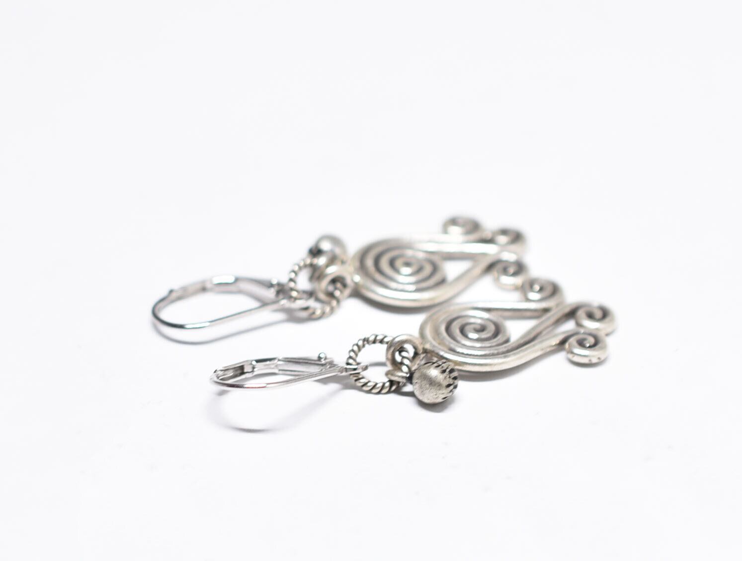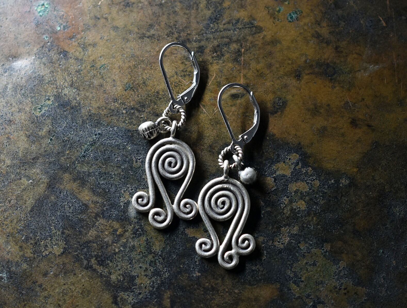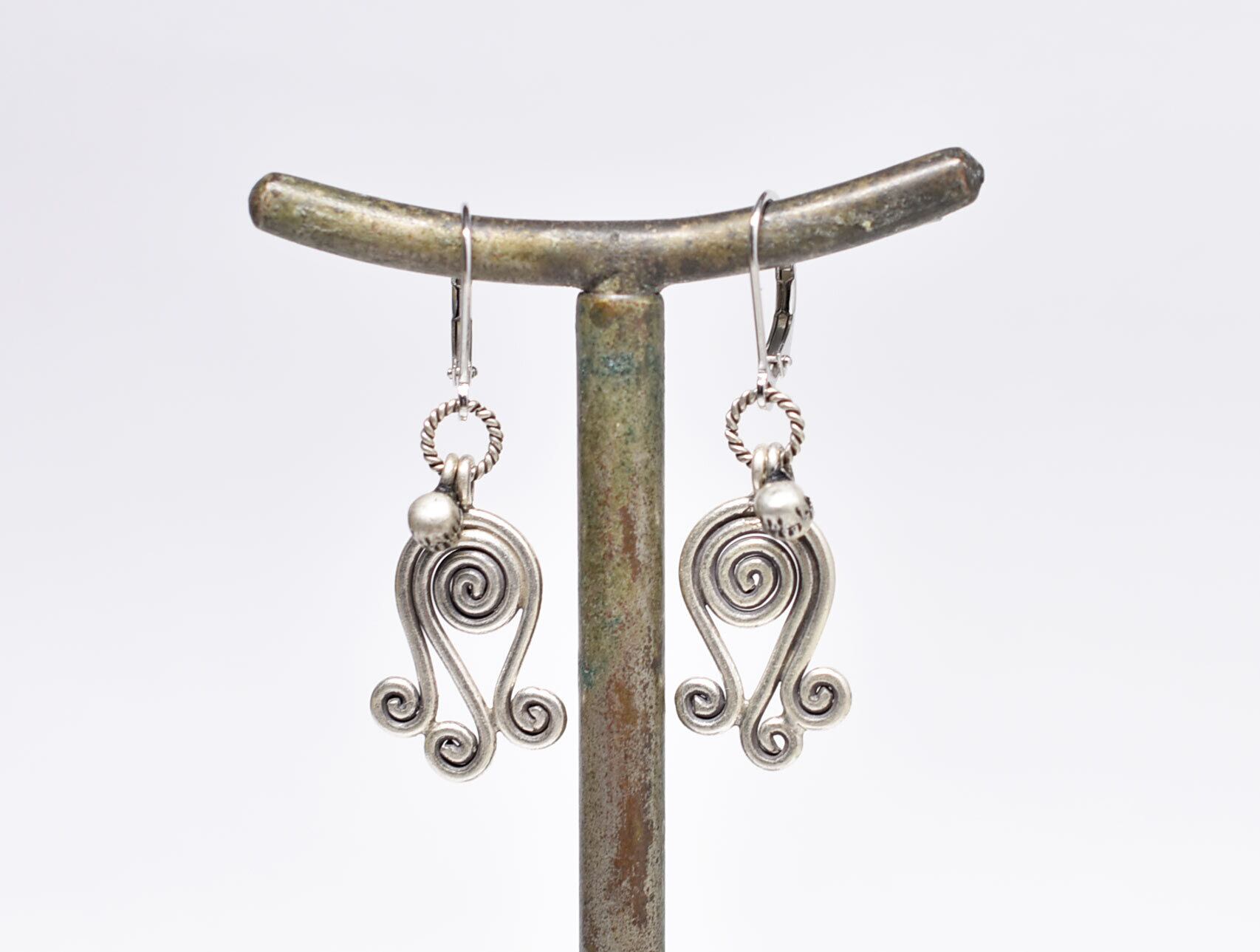 渦巻きカレンシルバーとインドシルバー鈴を繋いだピアスです。