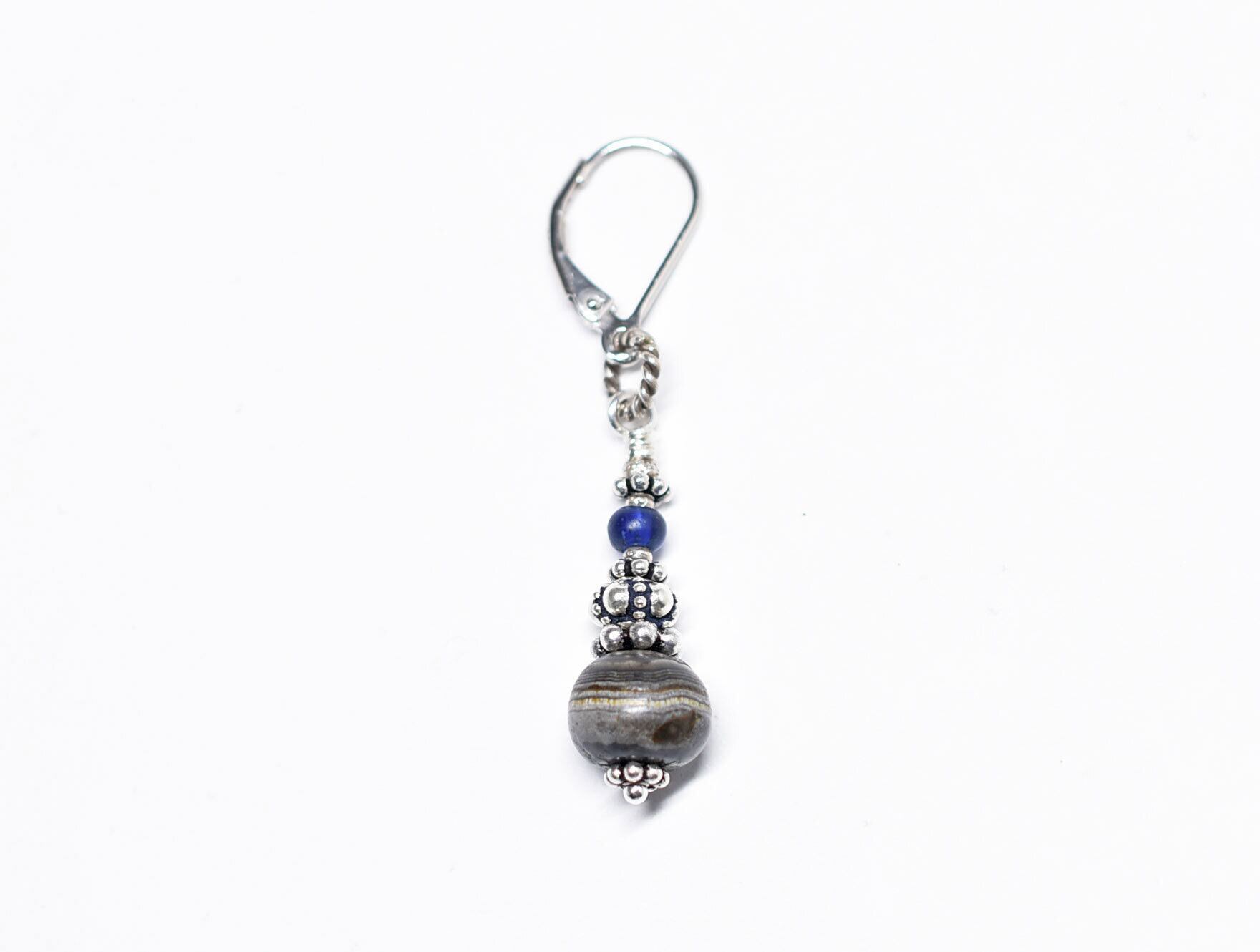 古代瑪瑙とブルーアンティークビーズ、シルバービーズの片耳ピアス