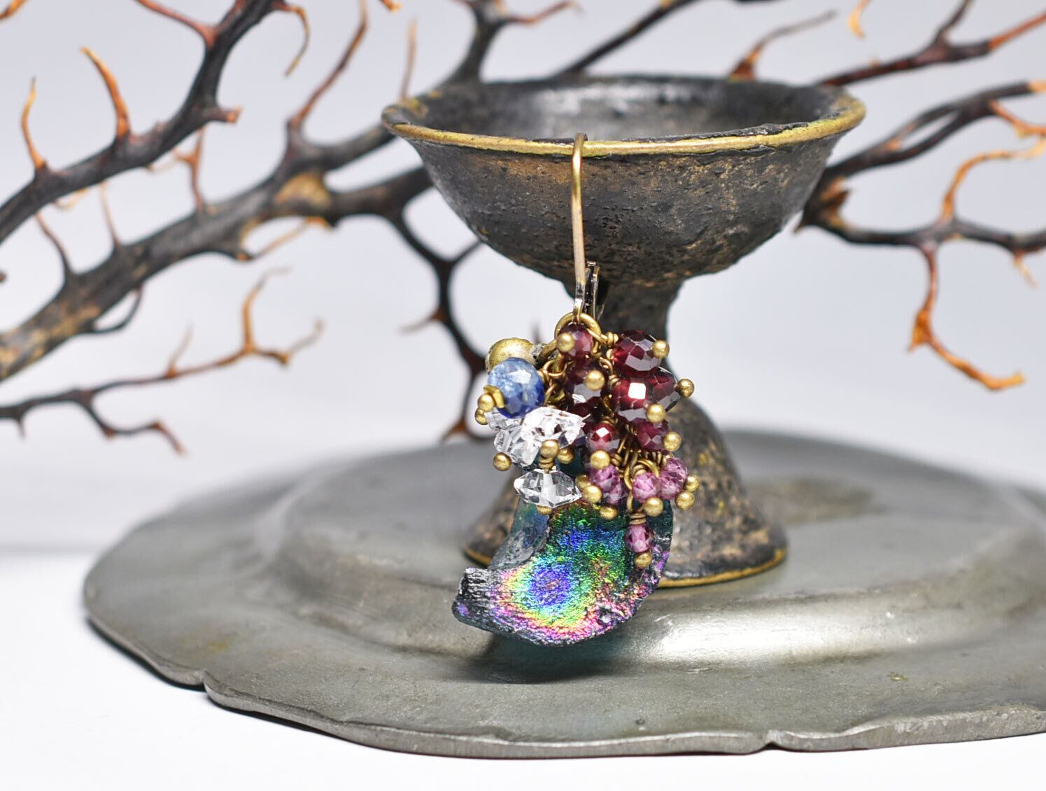 素材:ガラス、真鍮、ミックスメタル、ガーネット、ハーキマーダイヤモンド、カイヤナイト、カレンシルバー