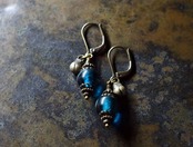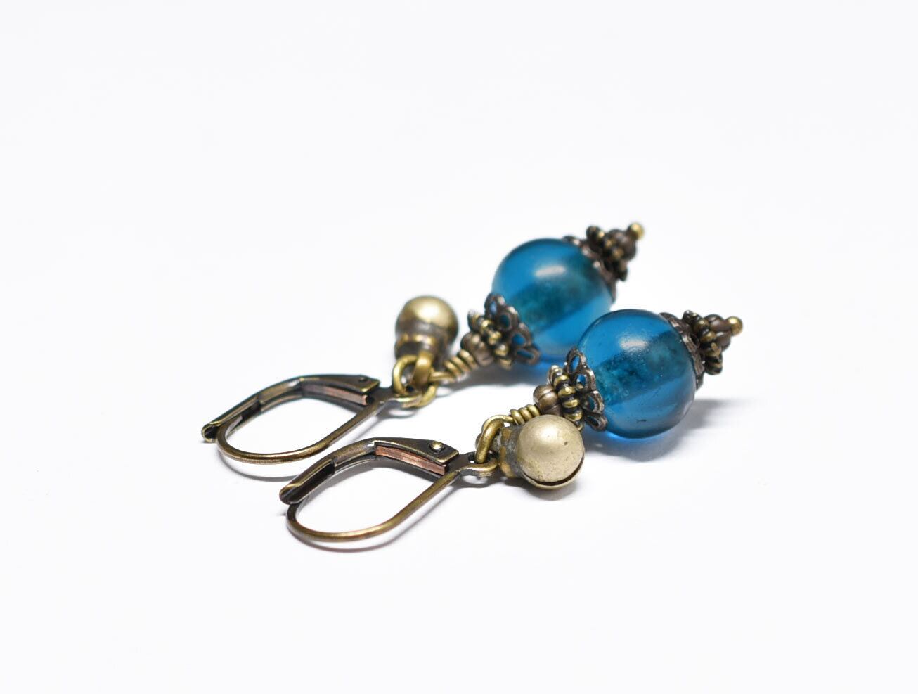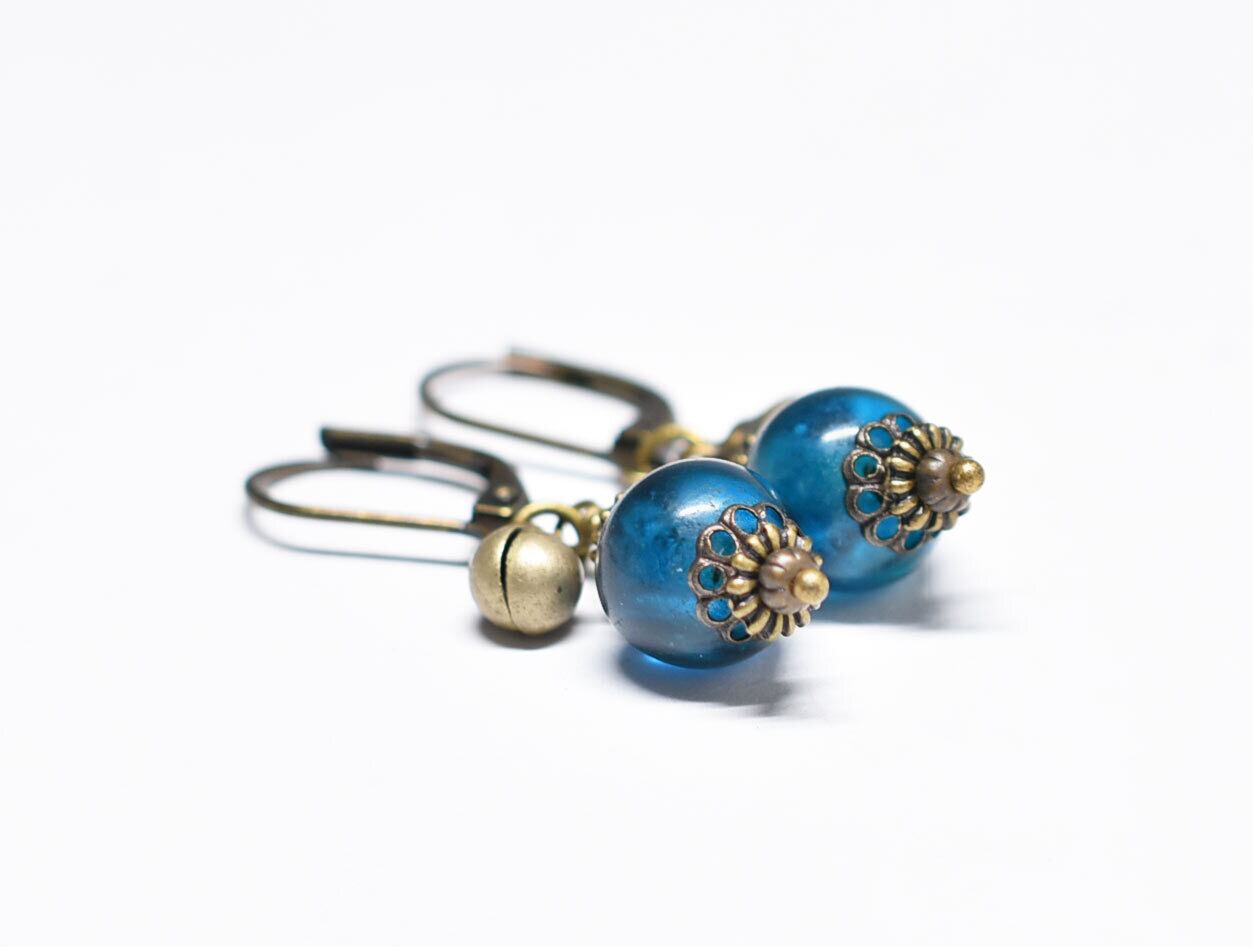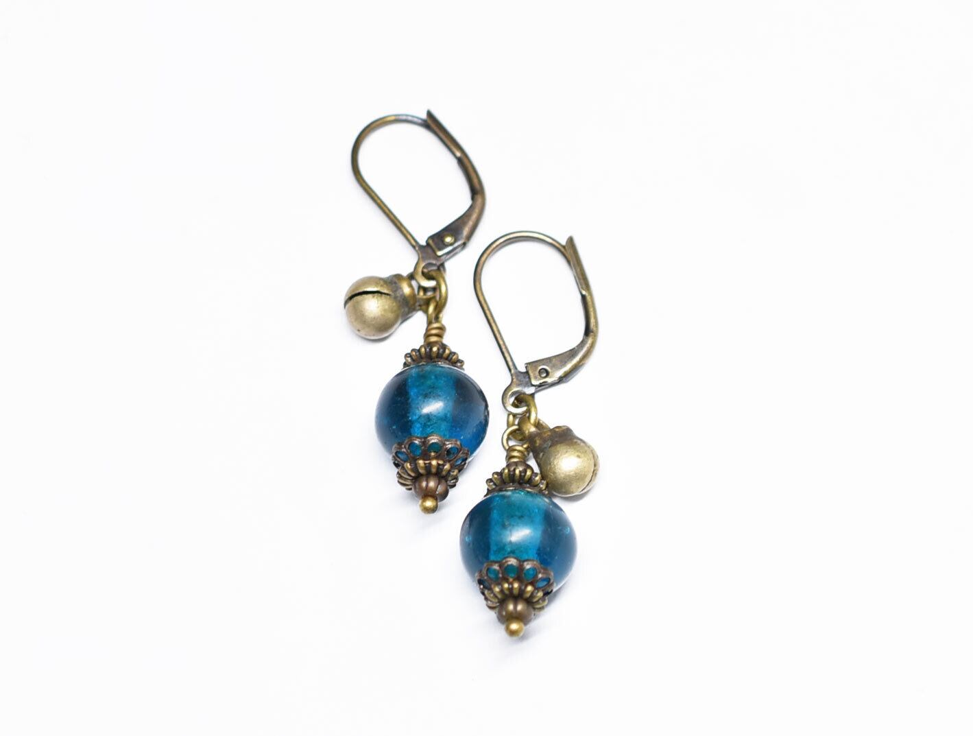 ブルーヴィンテージビーズと民族鈴を繋いだピアスです。