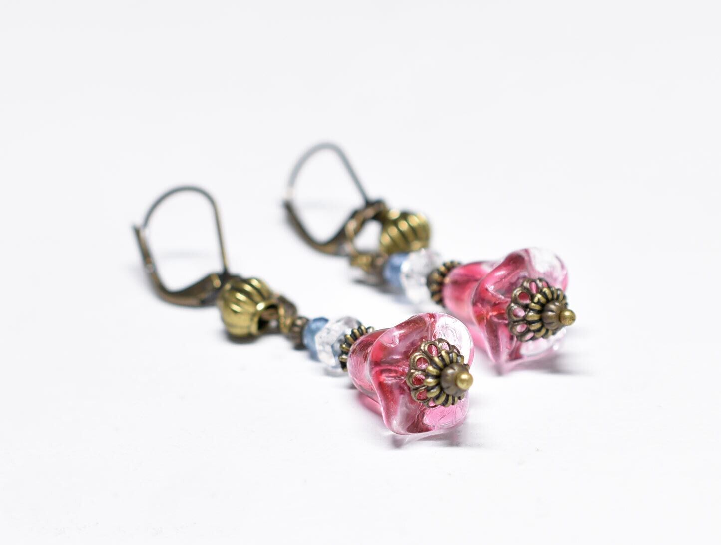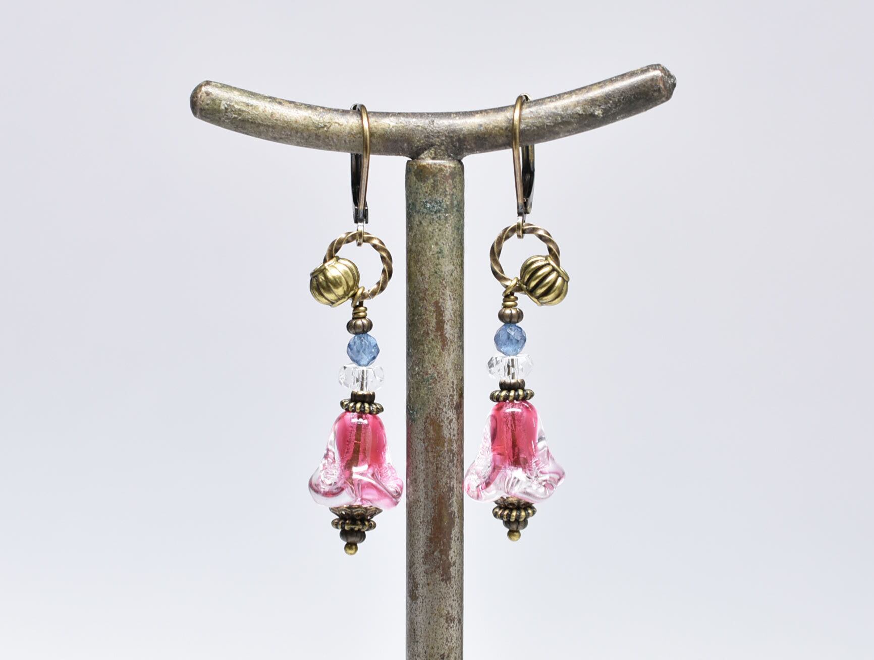 エンジェルトランペットの様なドイツヴィンテージビーズとクォーツ&アクアマリンのピアス
