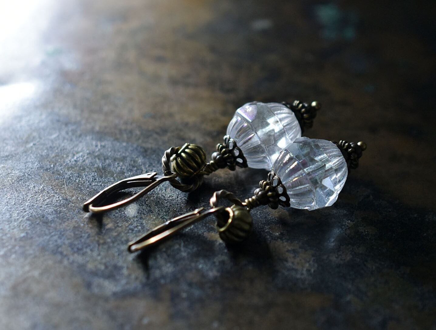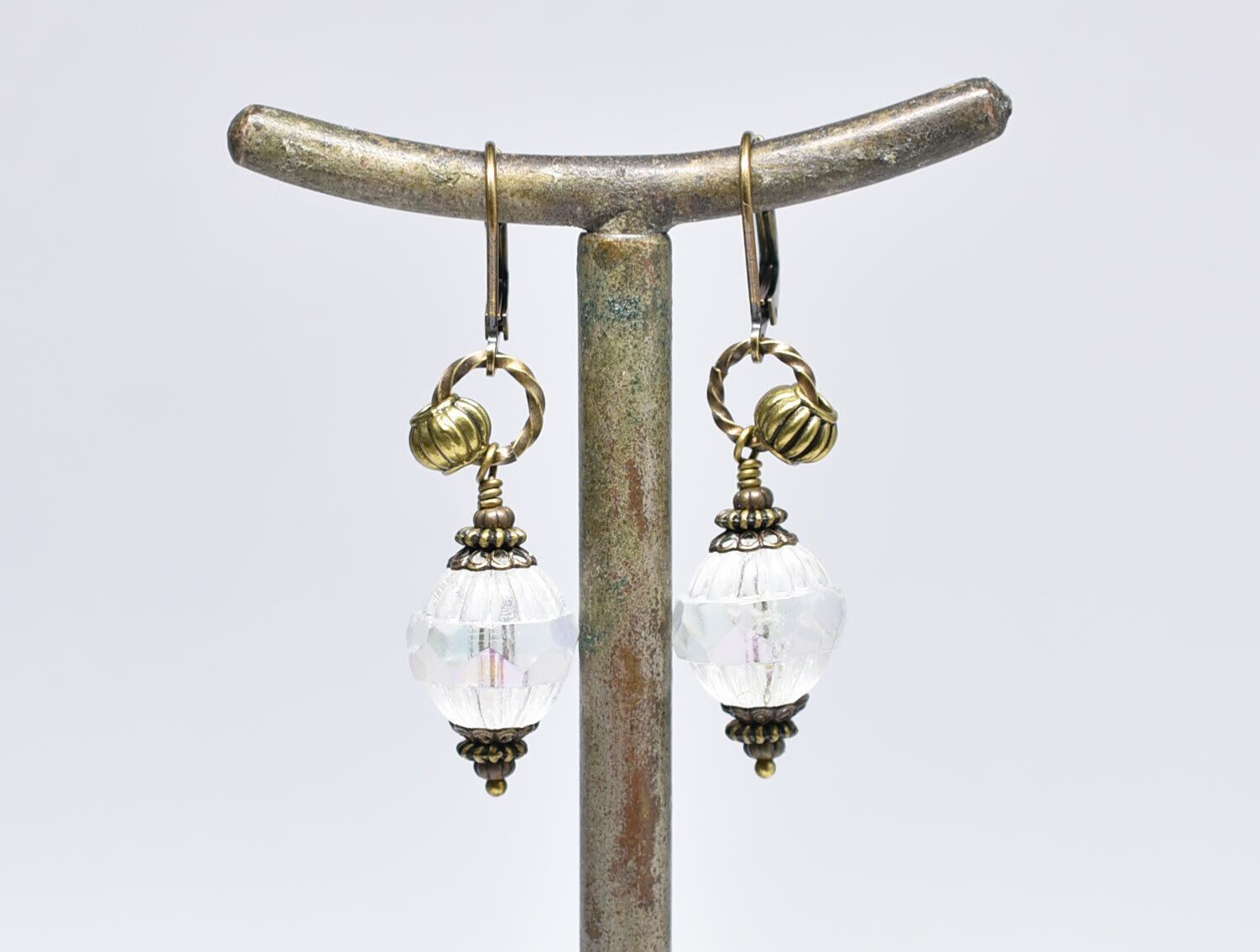 美しいカットのヴィンテージオーロラビーズのピアス