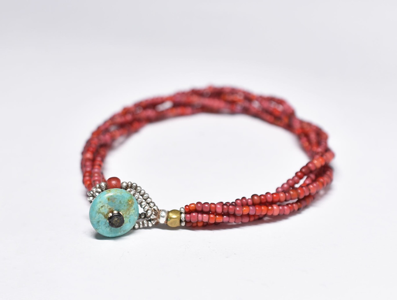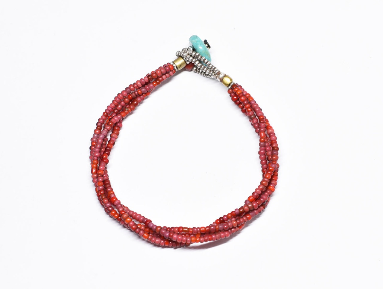 素材:ガラス、カレンシルバー、oldオリッサブラス、ターコイズ、ロウビキ紐