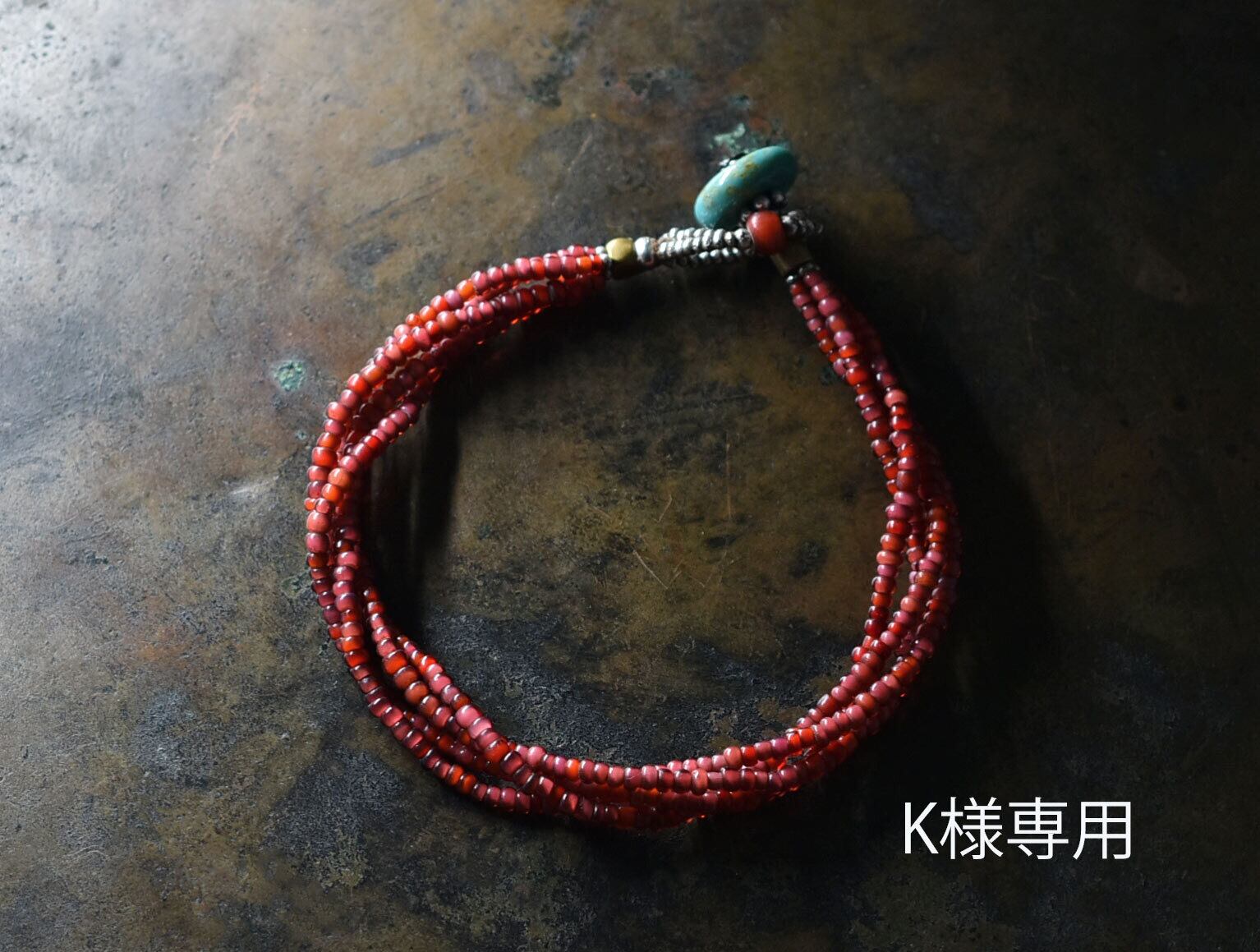「K様専用」アンティーク金赤mixホワイトハーツの4連ブレス(ターコイズ留め金)