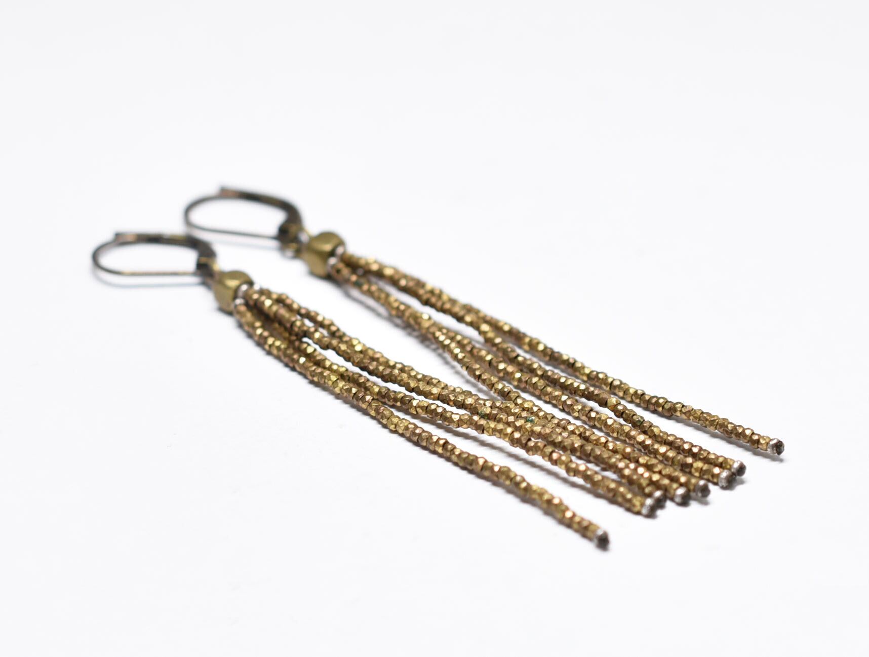 フランスアンティークカットメタルビーズを繋いだ4連ピアスです。