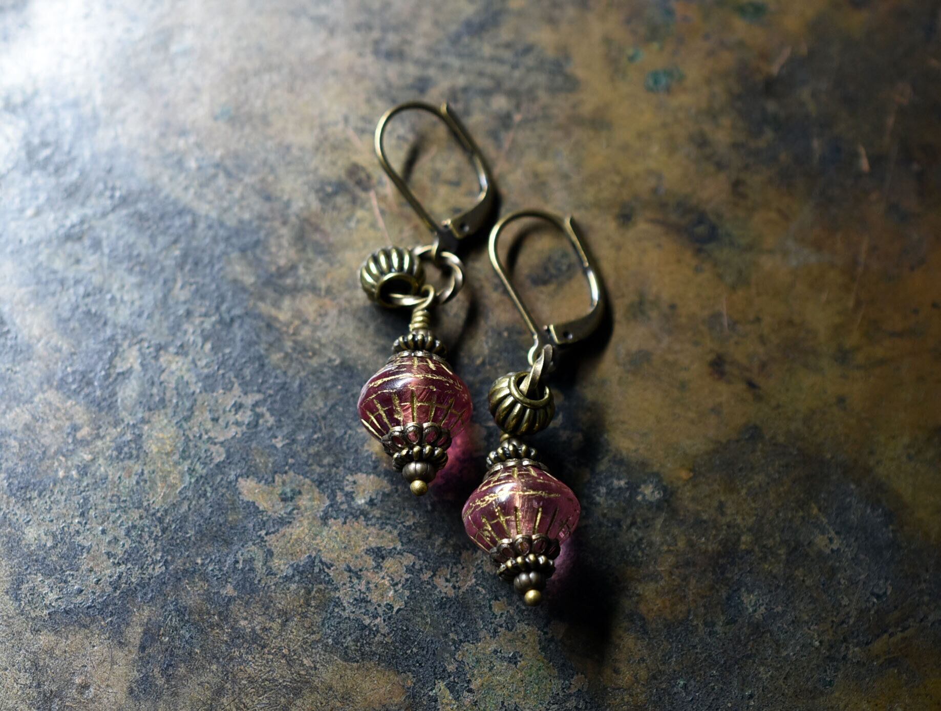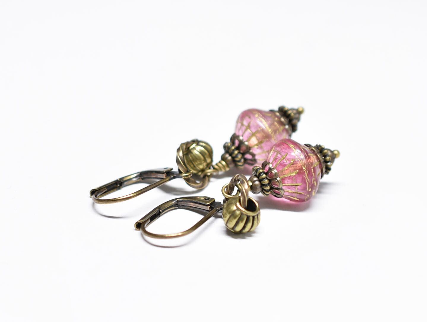 桜色ドイツヴィンテージビーズをリングへ繋いだピアスです。