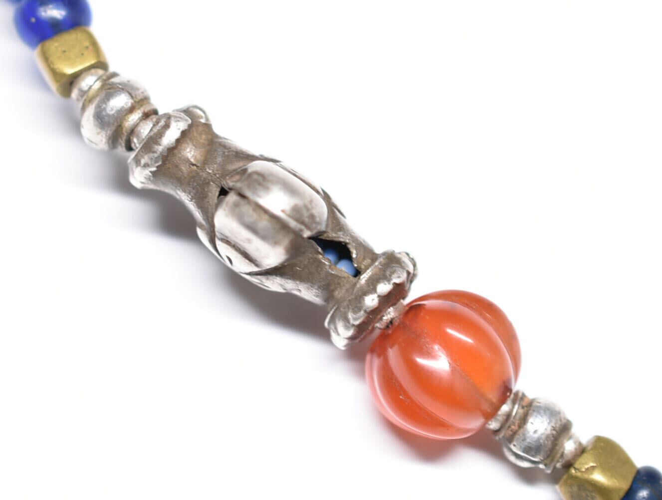oldヒマーチャルシルバーとヴィンテージ蜜柑玉カーネリアン、古代瑪瑙、oldオリッサブラス&チンシルバー、ブルービーズ、oldインドシルバーチャームのブレス