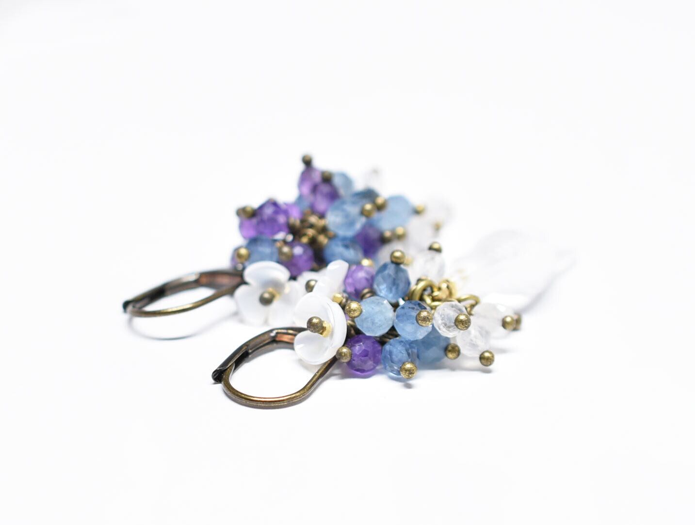 素材:ガラス、アクアマリン、ムーンストーン、アメジスト、真鍮、白蝶貝