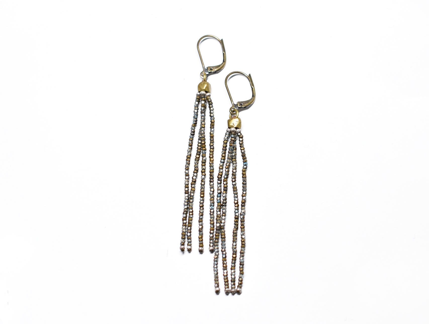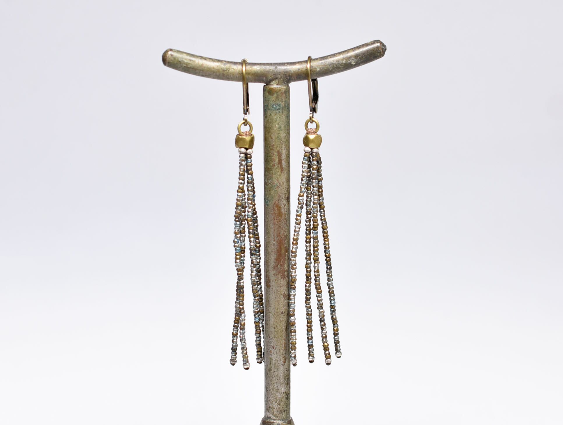 フランスアンティークカットメタルビーズを繋いだ4連のピアスです。